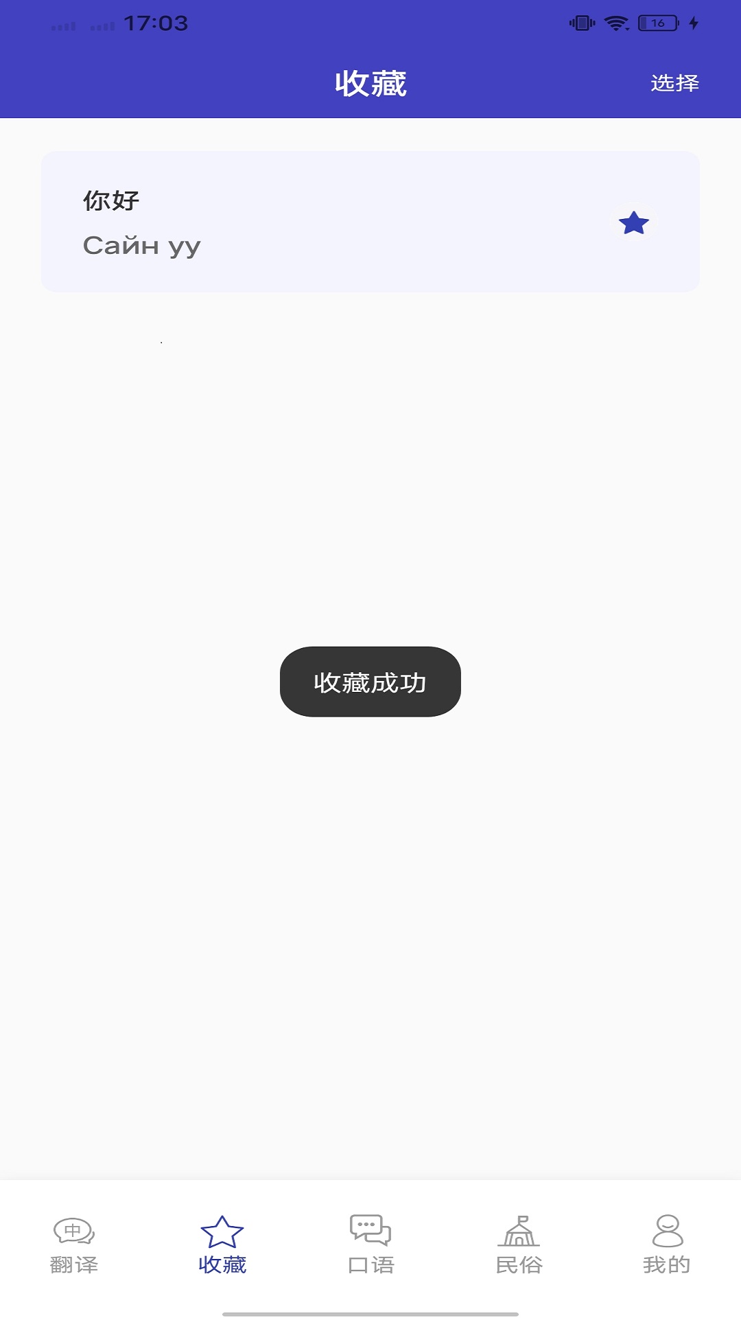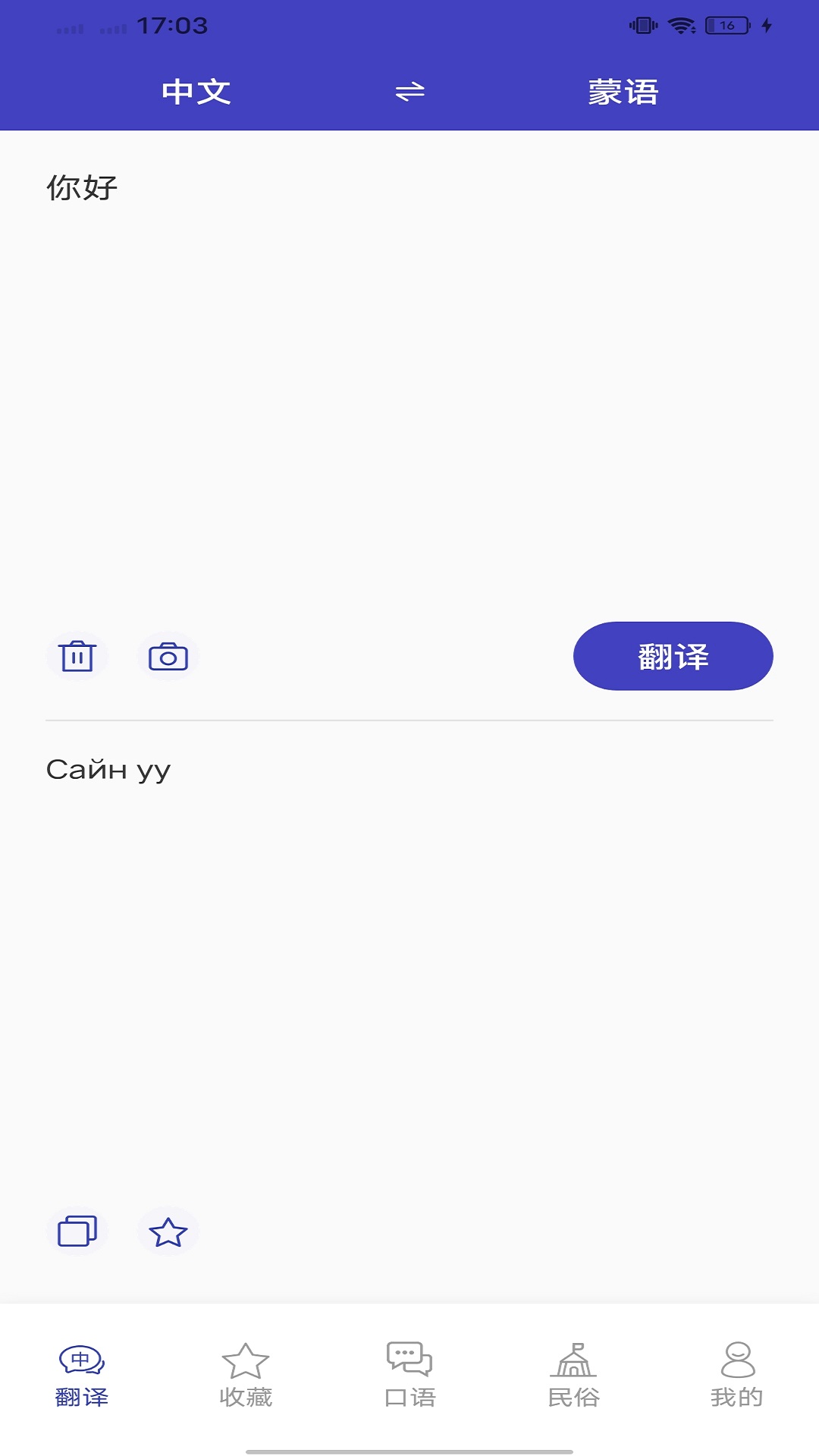 - 翻译收藏:蒙语学习,生字词,难记词,专业词汇都可以收藏起来,复习随时翻看。