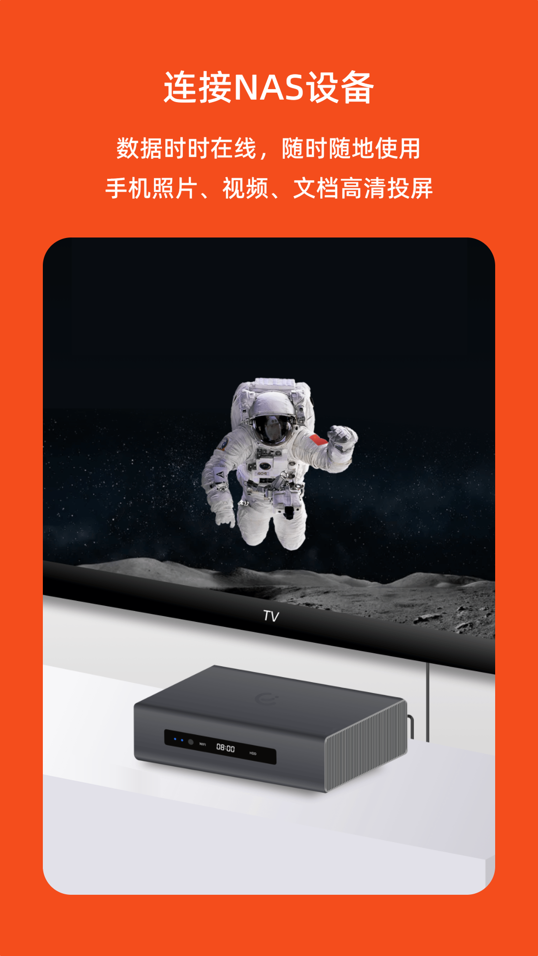 在连接NAS设备之后,用户可以随时随地对手机数据进行管理,让数据时刻保持在线状态,还能够实现照片、视频、文档的高清投屏。