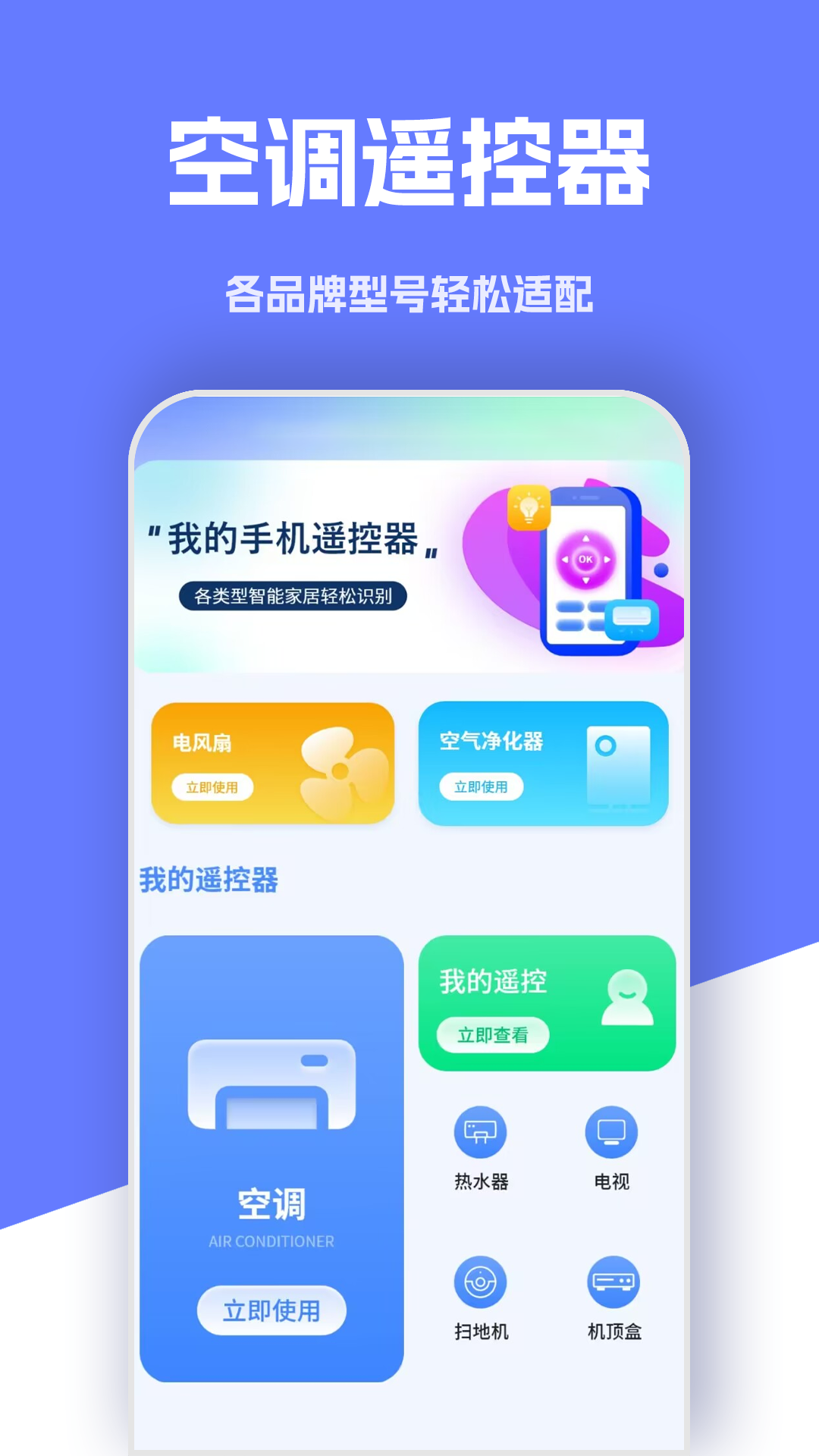 遥控器支持各种品牌空调,内置遥控器码库,无需网络轻松遥控,支持按品牌快速查找电器,再不用对着数十套遥控器数据逐一配对,手机秒变智能遥控器,一部手机遥控所有家用电器!