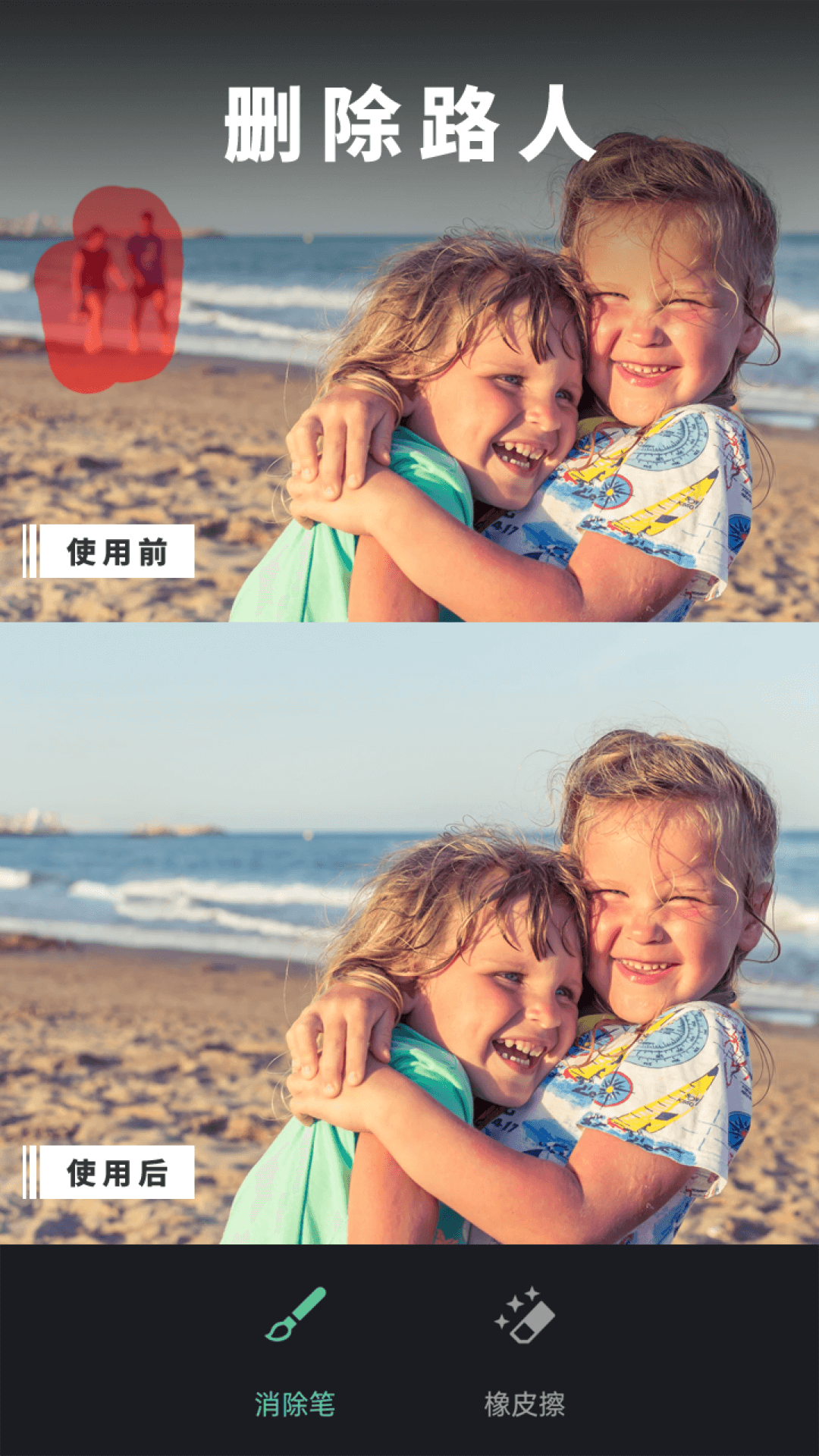 只要标记出图片中您不想要的物体,它们就能从图片里消失不见。哪怕是细小的瑕疵,轻轻一点,也能永久删除,让图片快速变得美观起来。