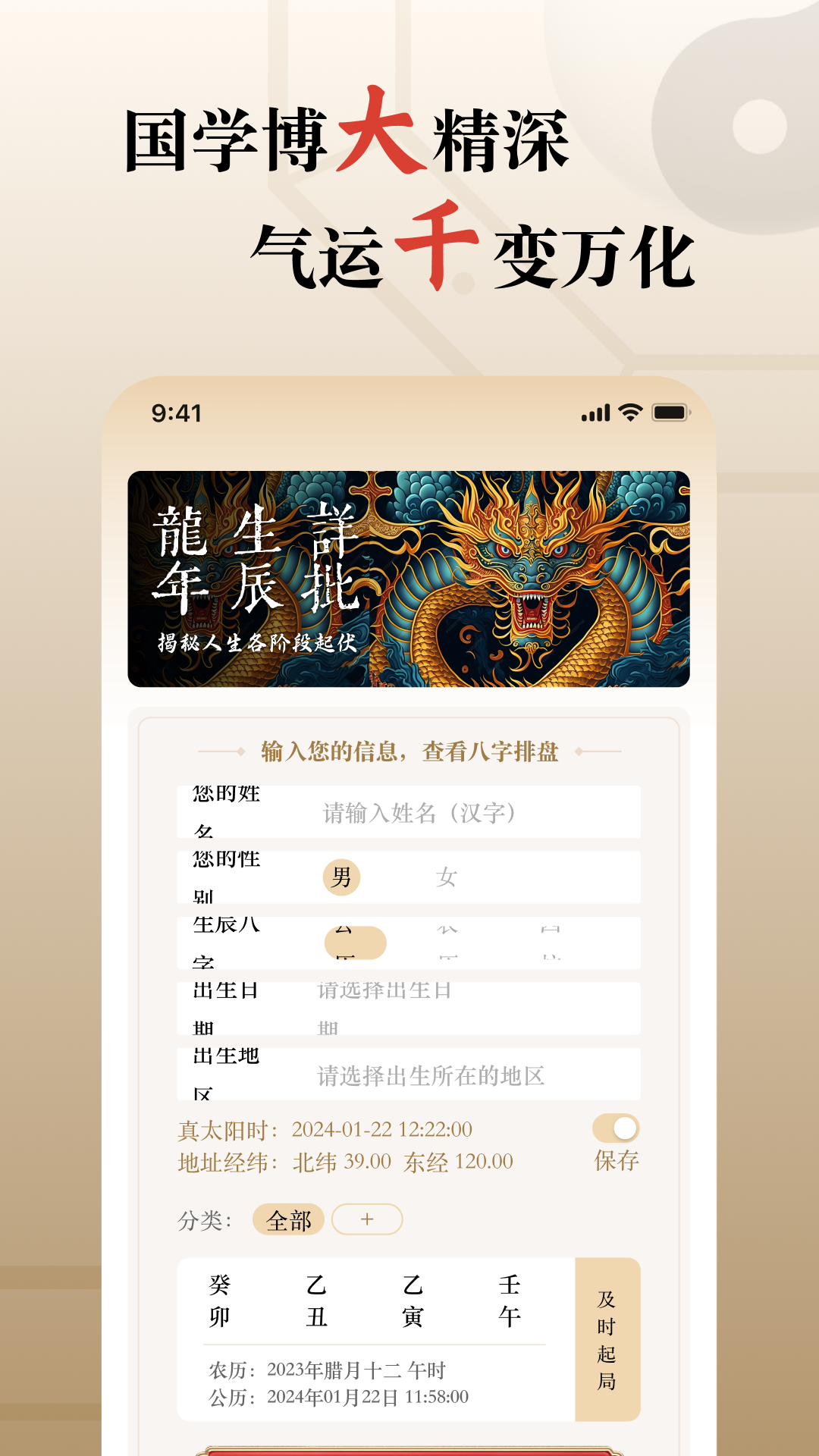 大千排盘软件还汇聚了丰富的易学文化内容与周易工具,为用户提供广泛的易学知识,这些知识覆盖了周易、八字、命理等诸多领域。借助这个APP,用户可以学习并了解易学文化的历史根源、核心理论以及应用方法,深入探寻周易的智慧。另外,该平台也包含众多的周易工具,像八字排盘,可助力用户开展个人命理分析、运势预测以及布局规划等操作。