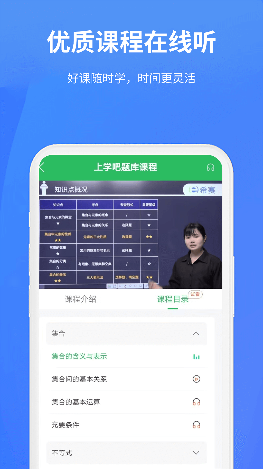 上学吧题库APP提供对应的网课视频教学课程。这些课程由专业讲师授课,对各个考试知识点进行讲解,能够精准地指导用户复习备考,从而帮助大家全面掌握考点内容。