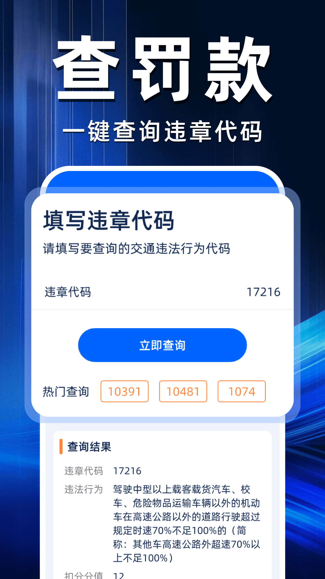 简单输入违章代码,即可一键查询违章处罚代码的详细含义,包括具体的违章违法行为说明、扣分分值、罚款金额等信息,帮助您了解掌握处罚规定。