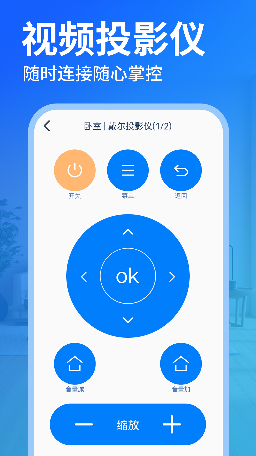 这是各种智能家电通用的手机遥控器,只需连接上一个红外设备,即可控制各种品牌的空调、电视、投影仪等智能家居设备,只为帮助用户管理各种电器设备的遥控功能。