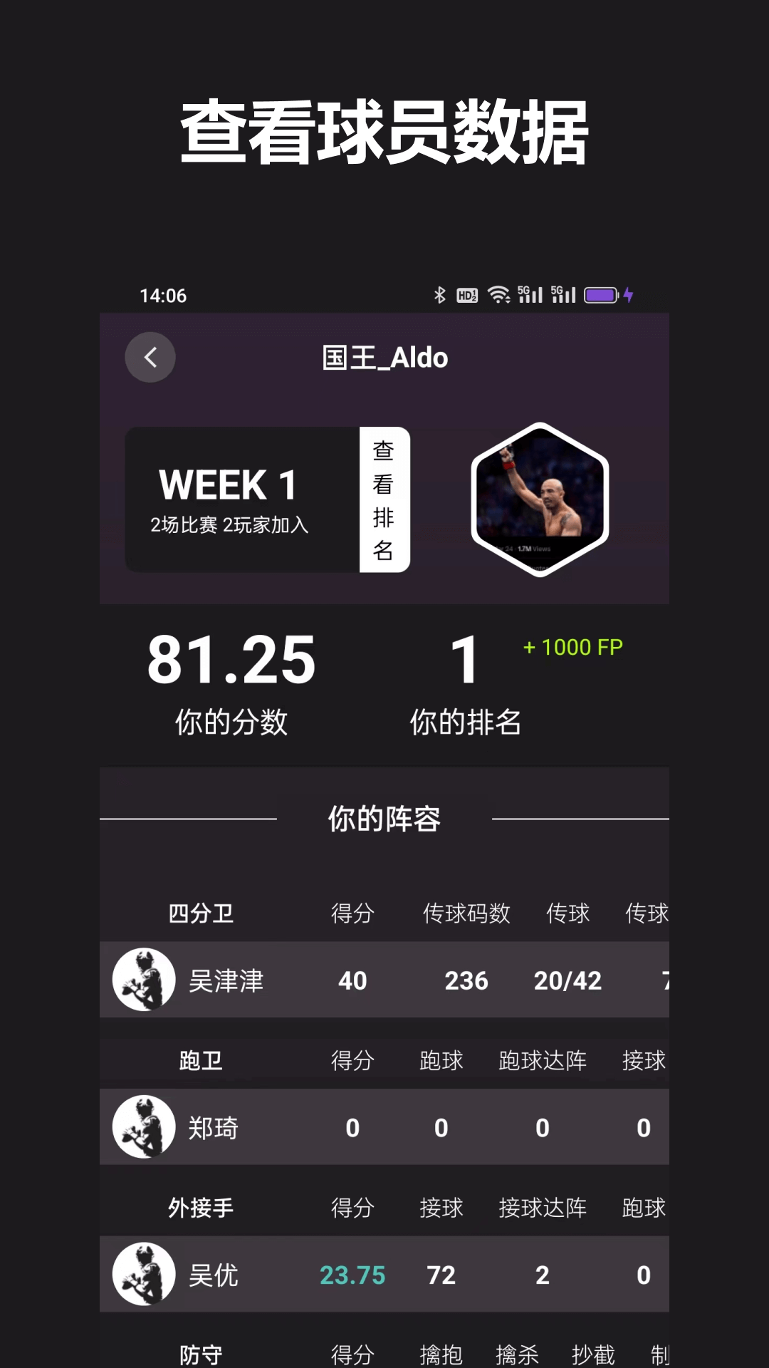 在这里,用户能够收藏自己心仪球员的球星卡呢。而且,针对每个比赛周,用户还可以预测球员的表现情况。