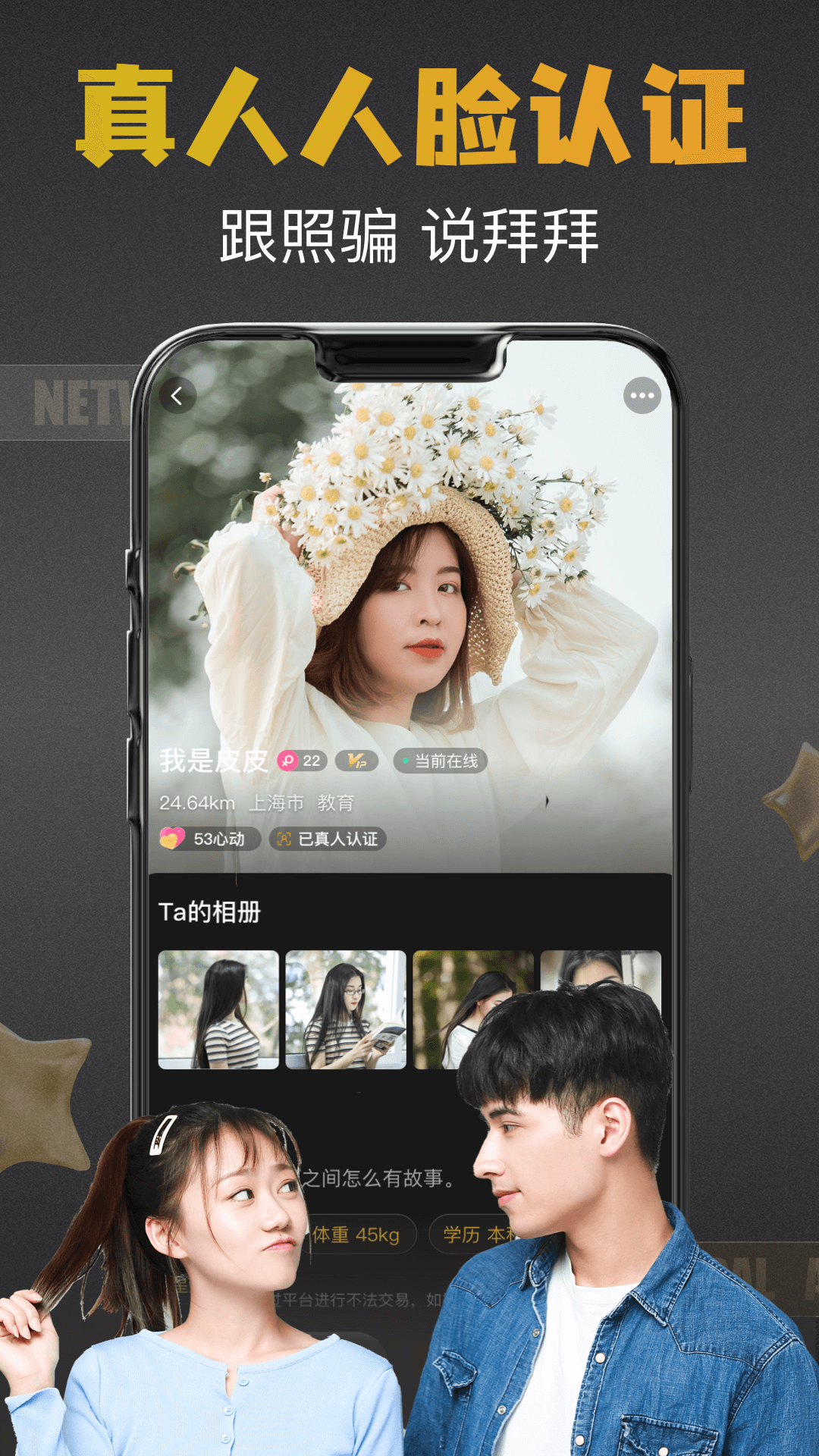【真实保障】女性头像经过AI真人审核,有效杜绝照骗现象,让你所见即真人!