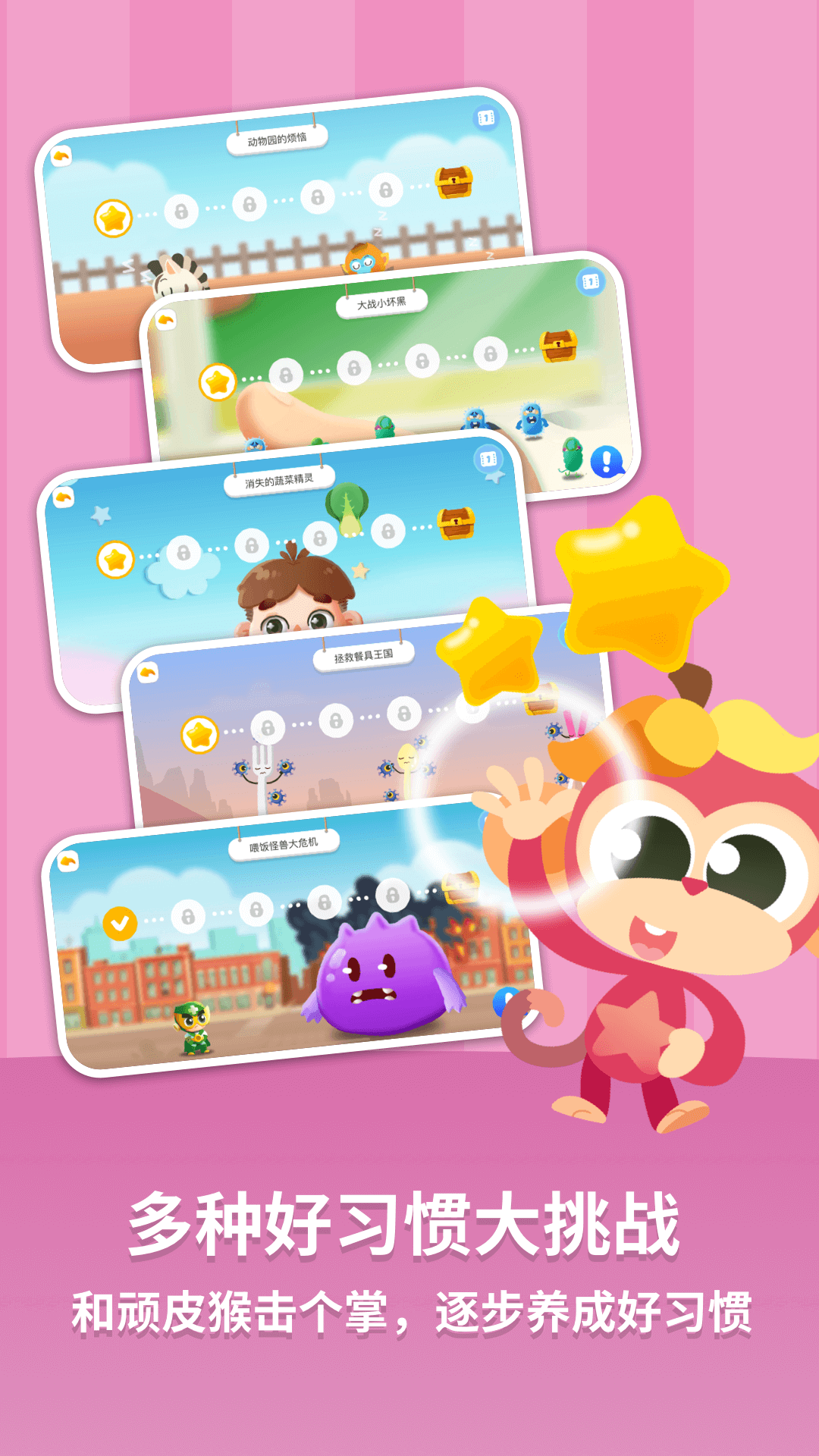 孩子每天坚持打卡,并且与顽皮猴进行小互动,这有助于督促孩子持之以恒,逐步养成好习惯。
