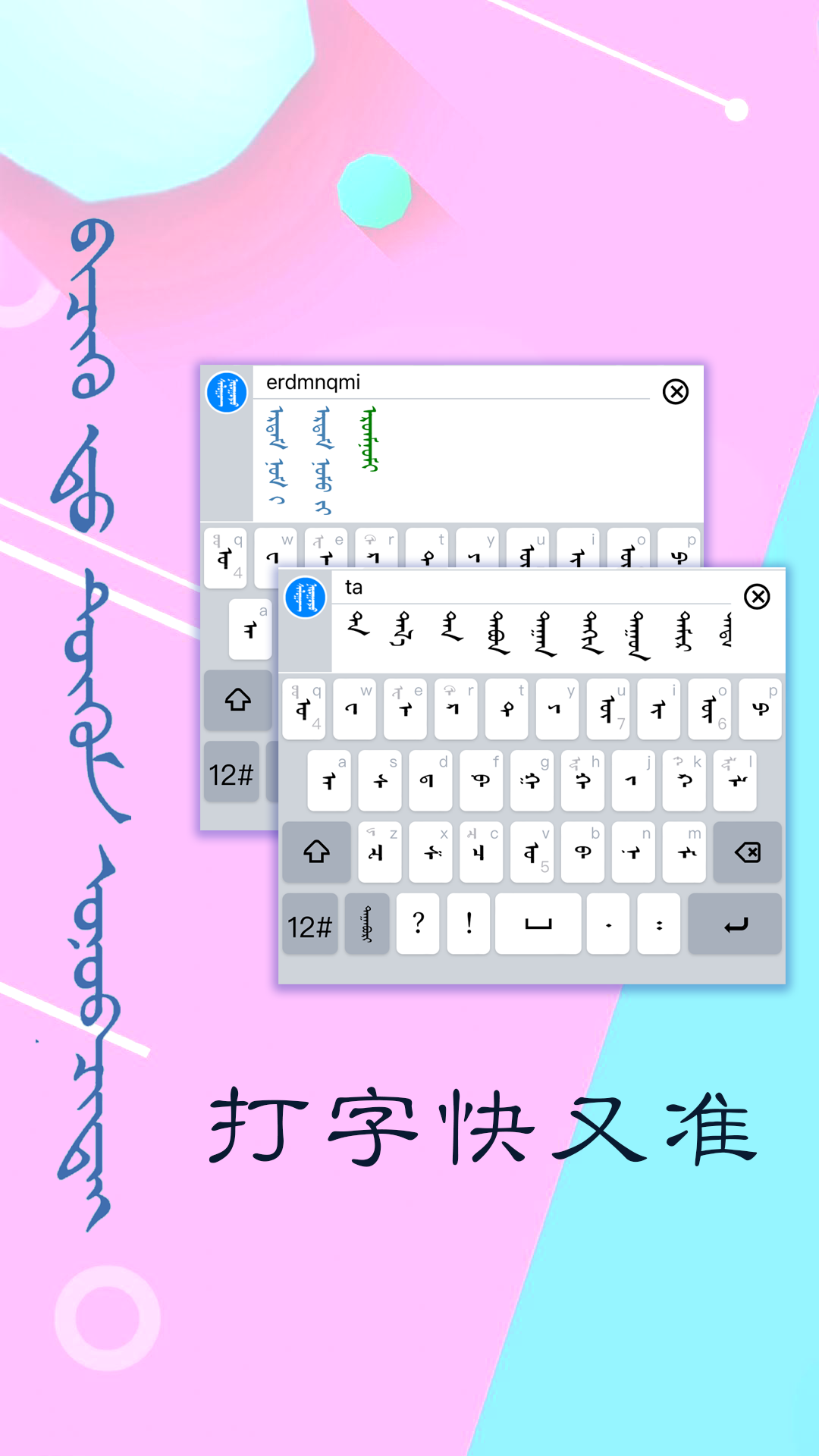 ● 支持多种输入方式,包括标准26子母件输入、蒙文查干陶勒盖键输入、数字、绘文字输入等。 ● 提供智能纠错功能,自动纠正输入中的拼写错误。 ● 支持微信聊天中发送竖排蒙古文。 ● 支持蒙古文的特殊字符和标点符号输入。