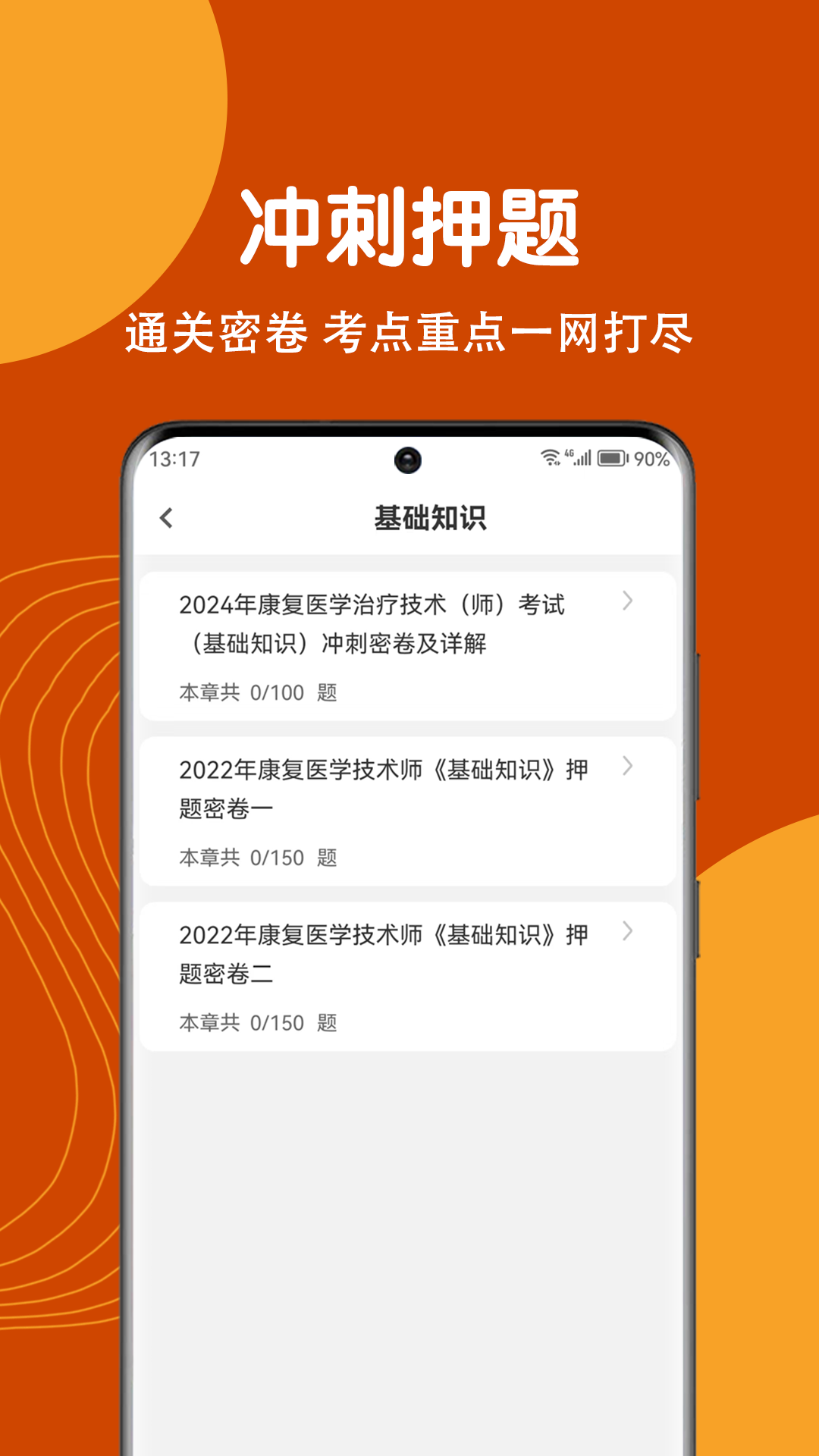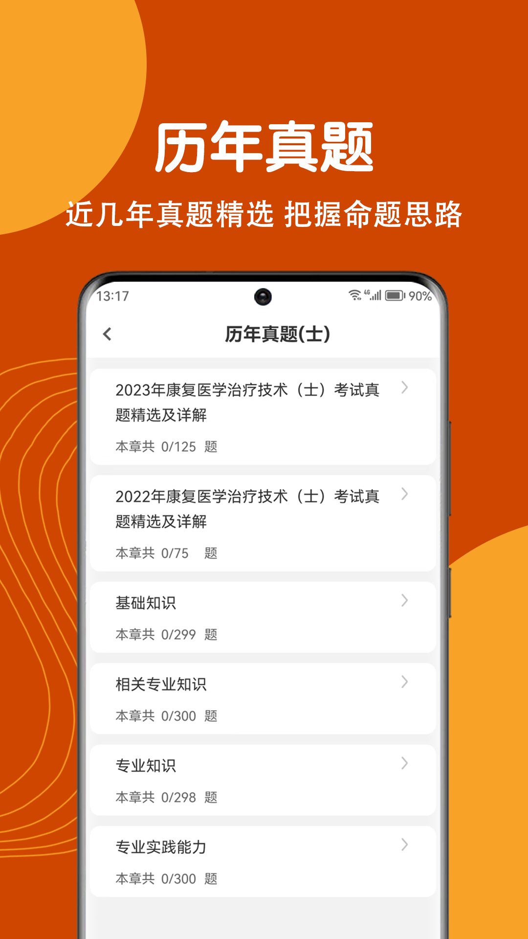 更有章节练习、历年真题、模拟试题、押题密卷、冲刺密卷等康复助手题型。