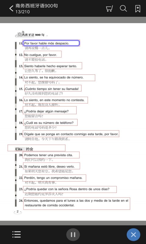 本App重点提供西班牙语商务语言知识。全书包含28个单元,这些单元基本上涵盖了商贸活动各个环节相关的西班牙语句型与对话等知识,像电话联系、产品介绍、询盘、报盘、还盘、付款方式、折扣与佣金、包装、运输、代理、保险、索赔等内容均有涉及。每个单元都由句型、对话、注释、词汇和商务小贴士这五个部分构成。读者学习本书之后,不但能够掌握商贸活动中的西班牙语知识,而且还能对西语国家的一些商务礼仪有所了解。
