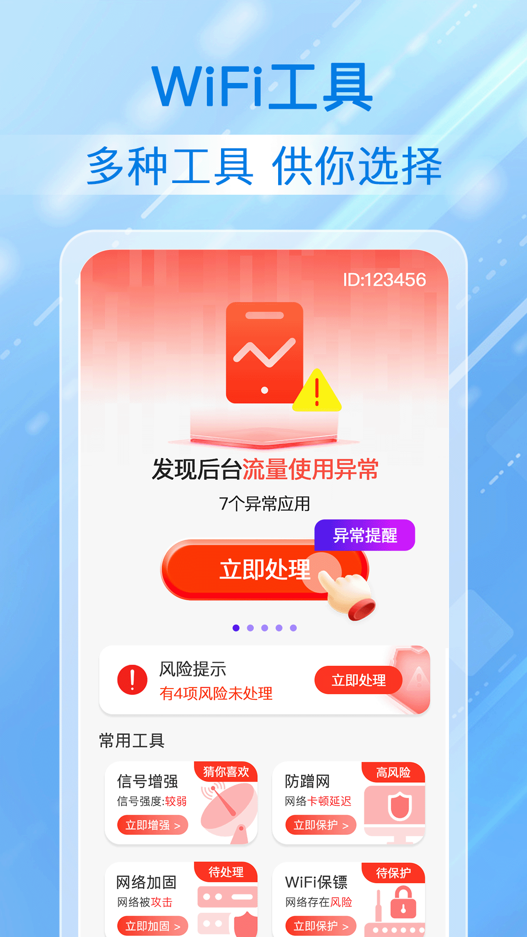 一款功能全面、操作便捷的WiFi管理工具,为用户提供全方位的网络安全保障和上网体验优化。这款应用的核心功能包括蹭网检测、网络加固和WiFi保镖。