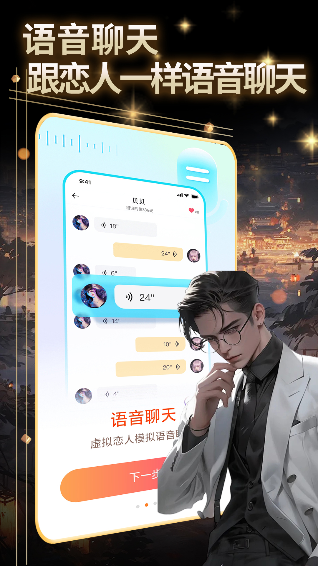 虚拟恋人AI是一款可以虚拟人物聊天的产品, 可以自主选择人物的性别、性格星座等