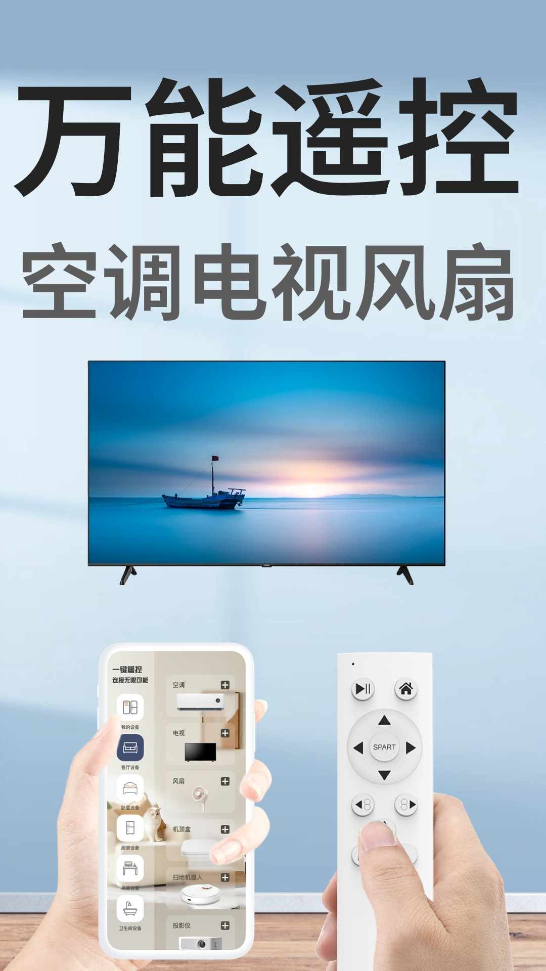 它功能十分丰富,主要功能涵盖了对空调、电视、智能风扇等多种家电的遥控,有了它,您就无需再到处寻找传统遥控器了。这款专为智能生活精心打造的遥控器APP,可以与目前市场上的大部分智能手机以及家居型号相匹配,电视遥控、空调遥控款式多达数百种。用户再也不必花费时间去找适配的遥控器了,只要拿出手机,就能轻松适配所有机型并快速连接,瞬间让手机变成智能遥控器!无论是电视、空调、风扇,还是机顶盒、网络盒子,都可以直接用手机遥控,而且不需要对准设备,随时随地,想怎么遥控就怎么遥控,所有的智能手机都能使用这个遥控器。