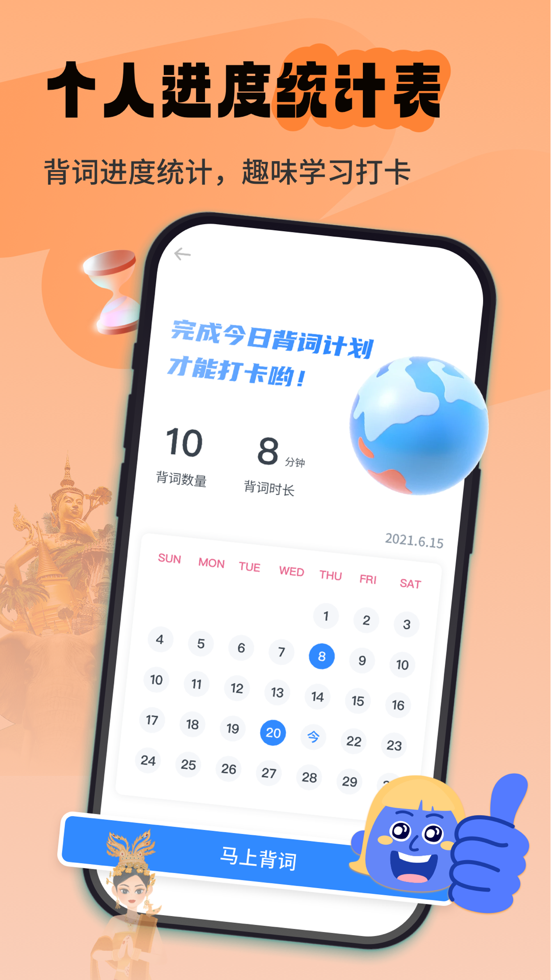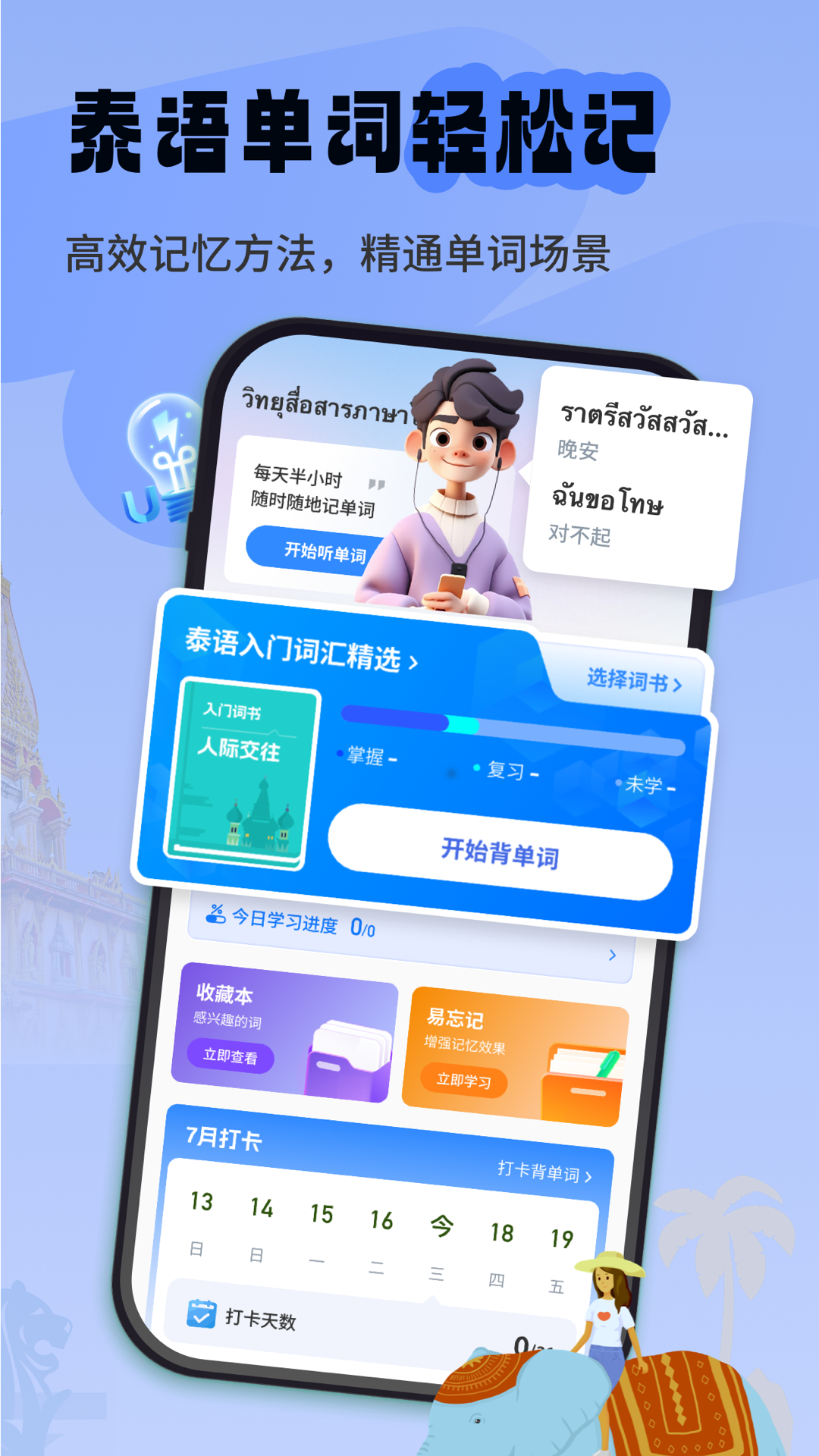 无论你是想留学交流、工作出差还是追星看剧,无论您背词的目的是什么,泰语单词随身听随时随地,开启泰语单词之旅!