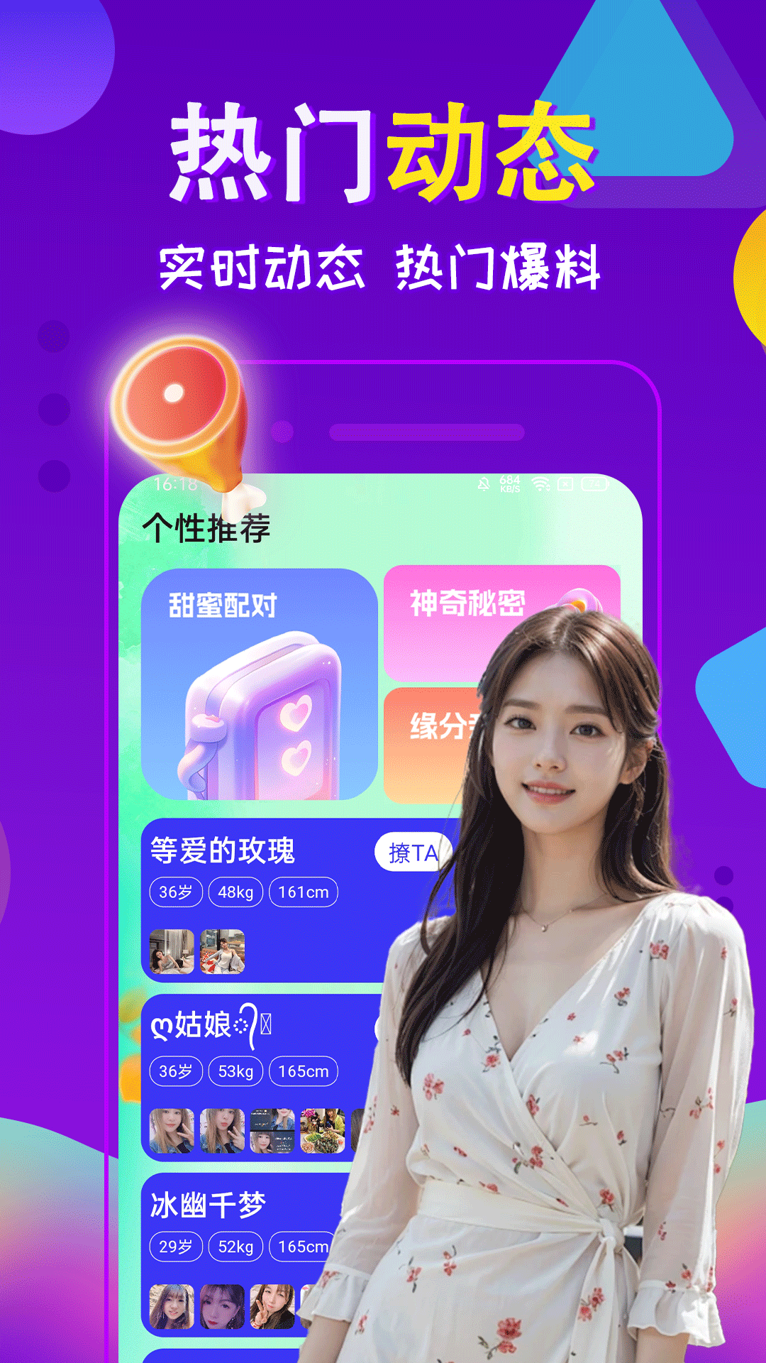 【优质展示】在这里,优质的用户会在首页展示,让您一眼遇到心动的TA!