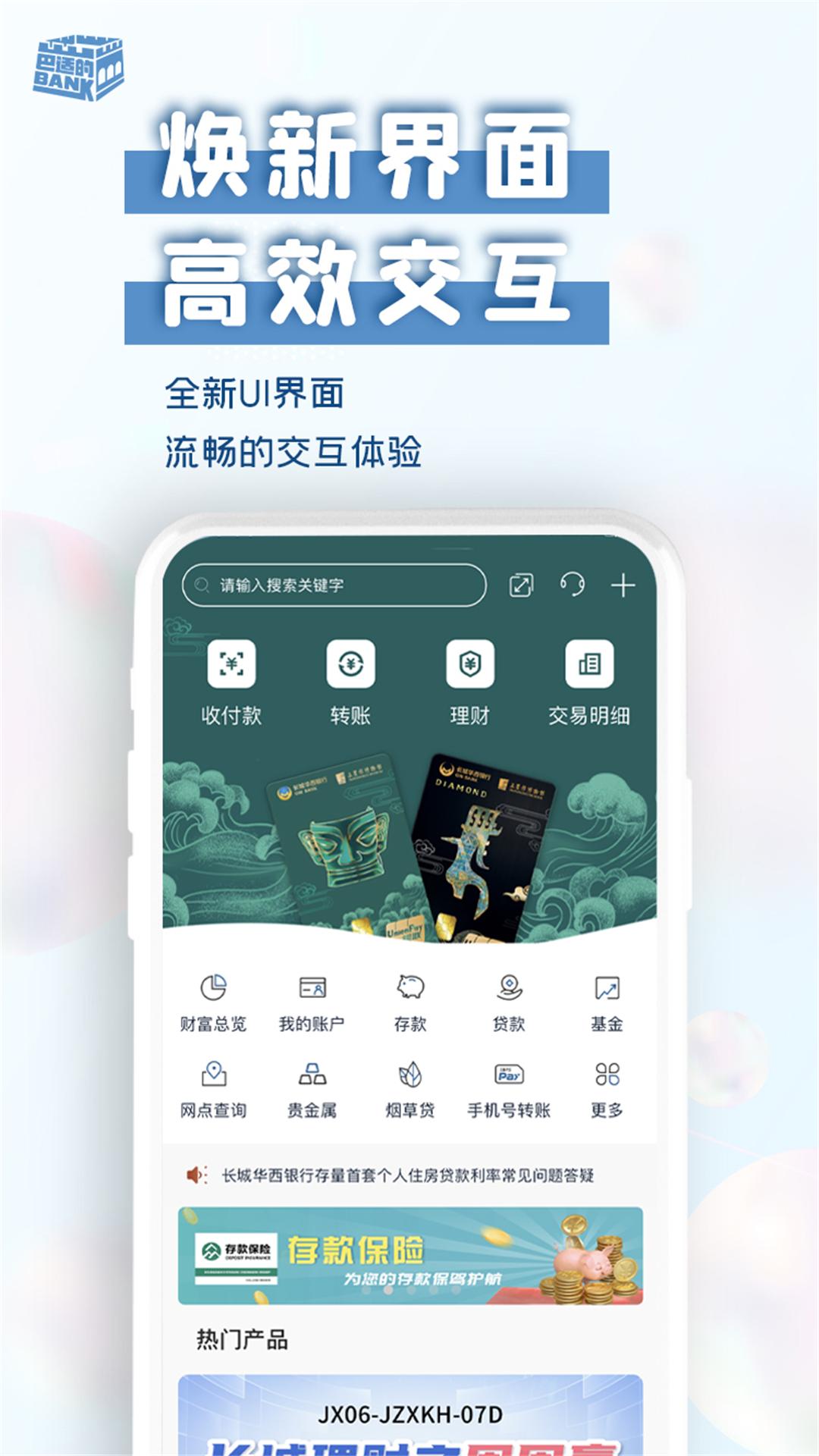 长城华西移动银行是我行为个人客户提供的新移动金融业务服务。客户可通过智能手机实现账户查询、转账汇款、投资理财、充值缴费、贷款等一系列电子金融交易服务,同时移动银行还提供了网点查询、利率查询、资费查询等实用功能。