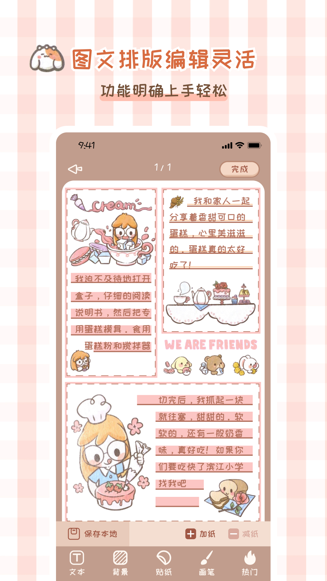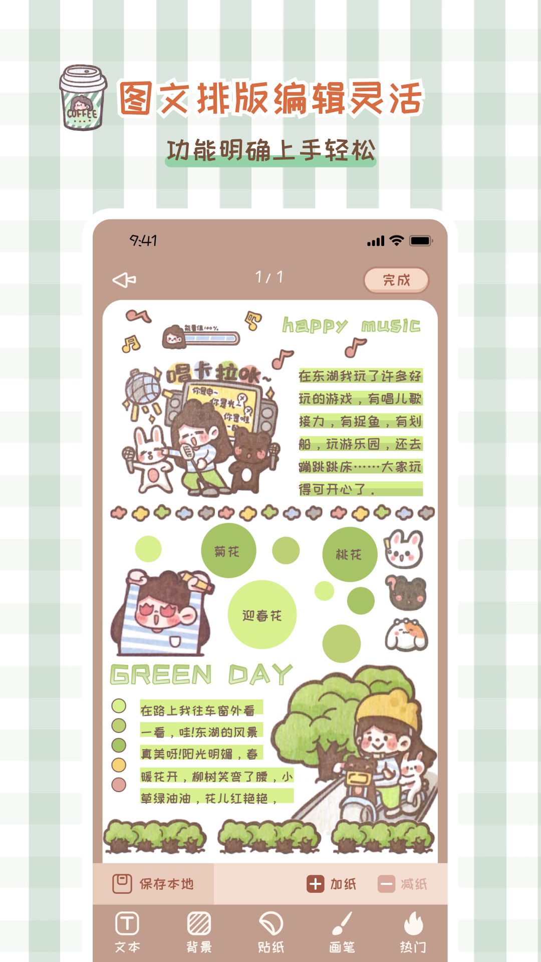 *图文拼图,还有丰富的背景/封面/贴纸等素材,各种风格都有,且在不断增加;