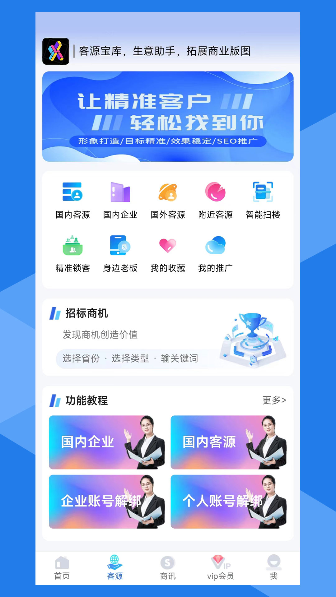 寻客魔方具备多种强大功能,涵盖国内客源、国内企业、国外客源的挖掘,还包括视频提取、优化分析、批量抓图、短视频运营、招标商机获取、魔推、视频文案提取、无人直播以及商讯等功能。