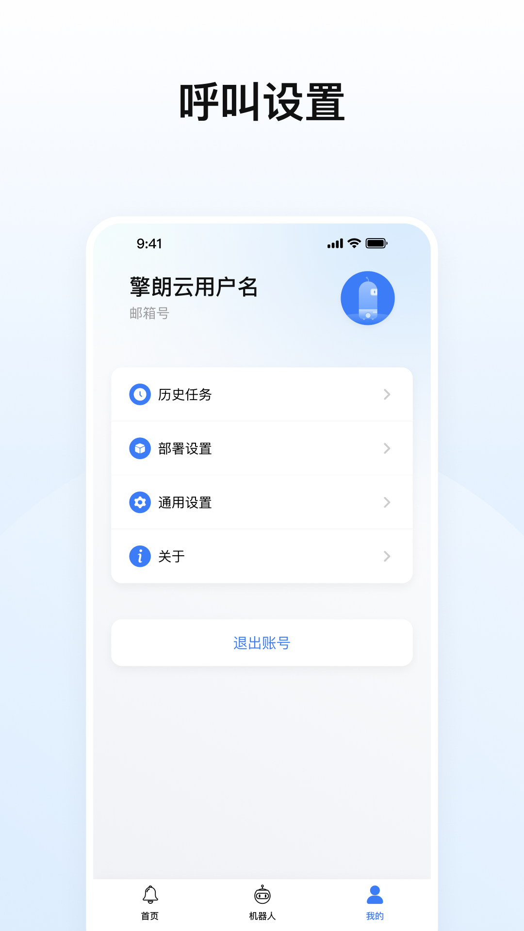 擎朗机器人是高效管理擎朗旗下机器人的一款应用,通过APP,你可以利用手机对机器人进行远程呼叫,实时查看机器人任务进度,对机器人进行管理,对机器人进行便捷高效的交互。