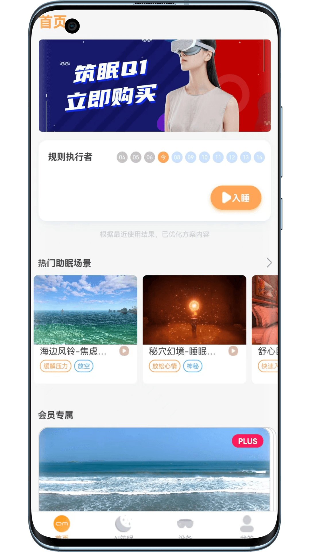 筑眠在辅助睡眠方面的具体做法如下:高度自主研发内容,融合先进的睡眠疗法;打造逼真的CG场景,提供沉浸式体验,包括将精神音乐与脑波音乐相融合、白噪音与粉红噪音共同发挥作用、场景完美模拟大自然光线以及场景元素与钟摆原理相结合等。