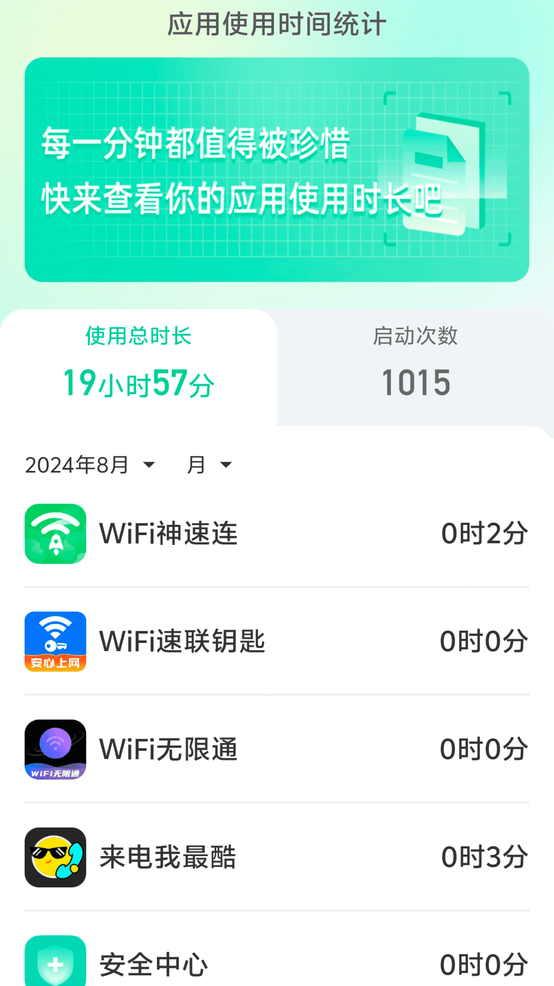 省流量助手的应用使用时间统计功能,可以协助您知晓每个应用的使用时长。它能实时记录您每天花费在各个应用上的时间,让您轻松把握自己的使用习惯。