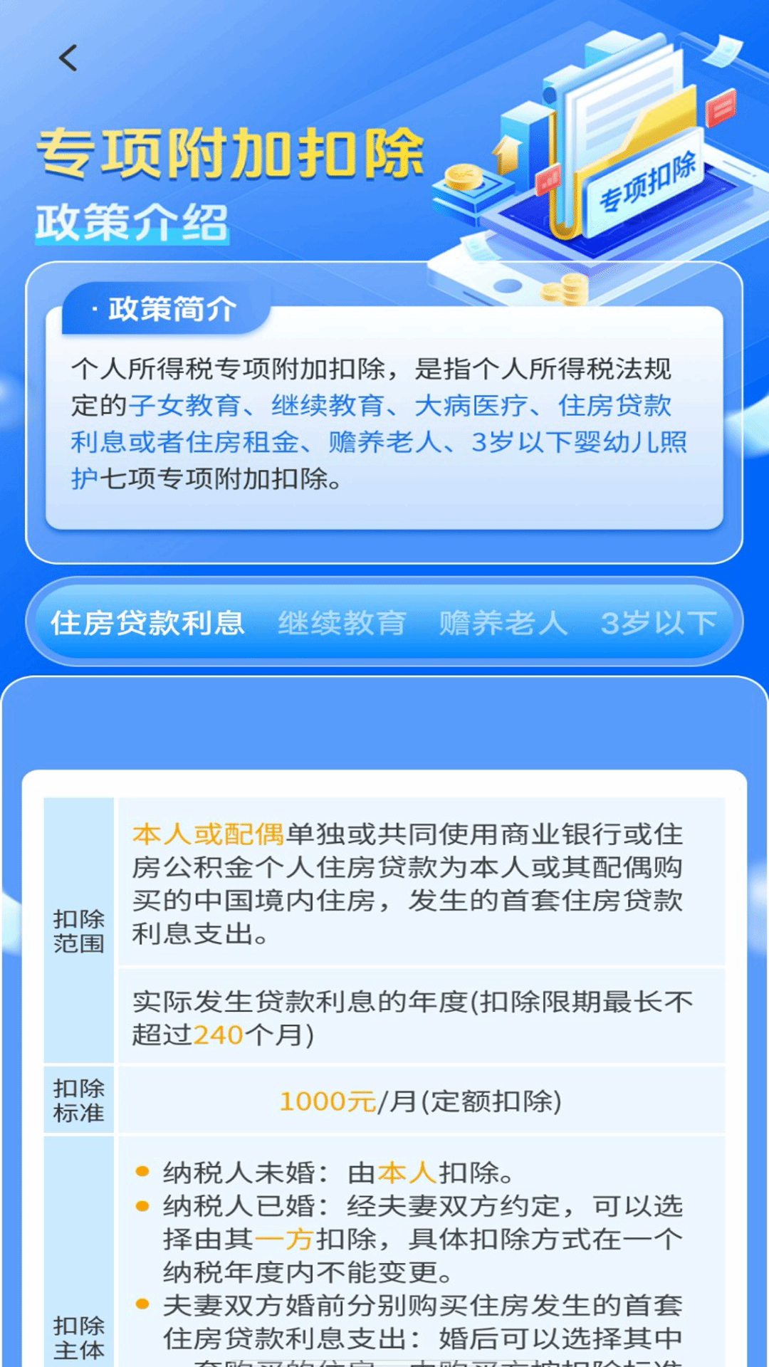 专项附加扣除:清晰展示用户可能享有的专项附加扣除项目,如子女教育、赡养老人等,帮助用户合理规划税务。