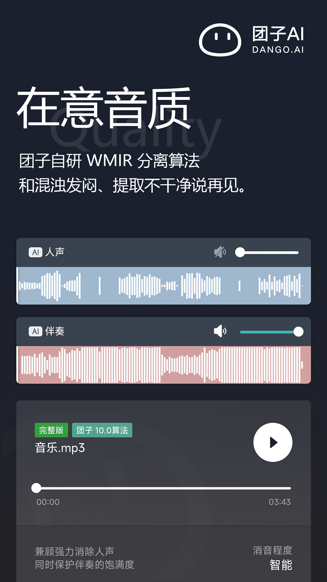 团子AI,这一在圈内广受用户好评的老牌分离工具,向来以音质为核心优势,如今移动版已经推出啦。