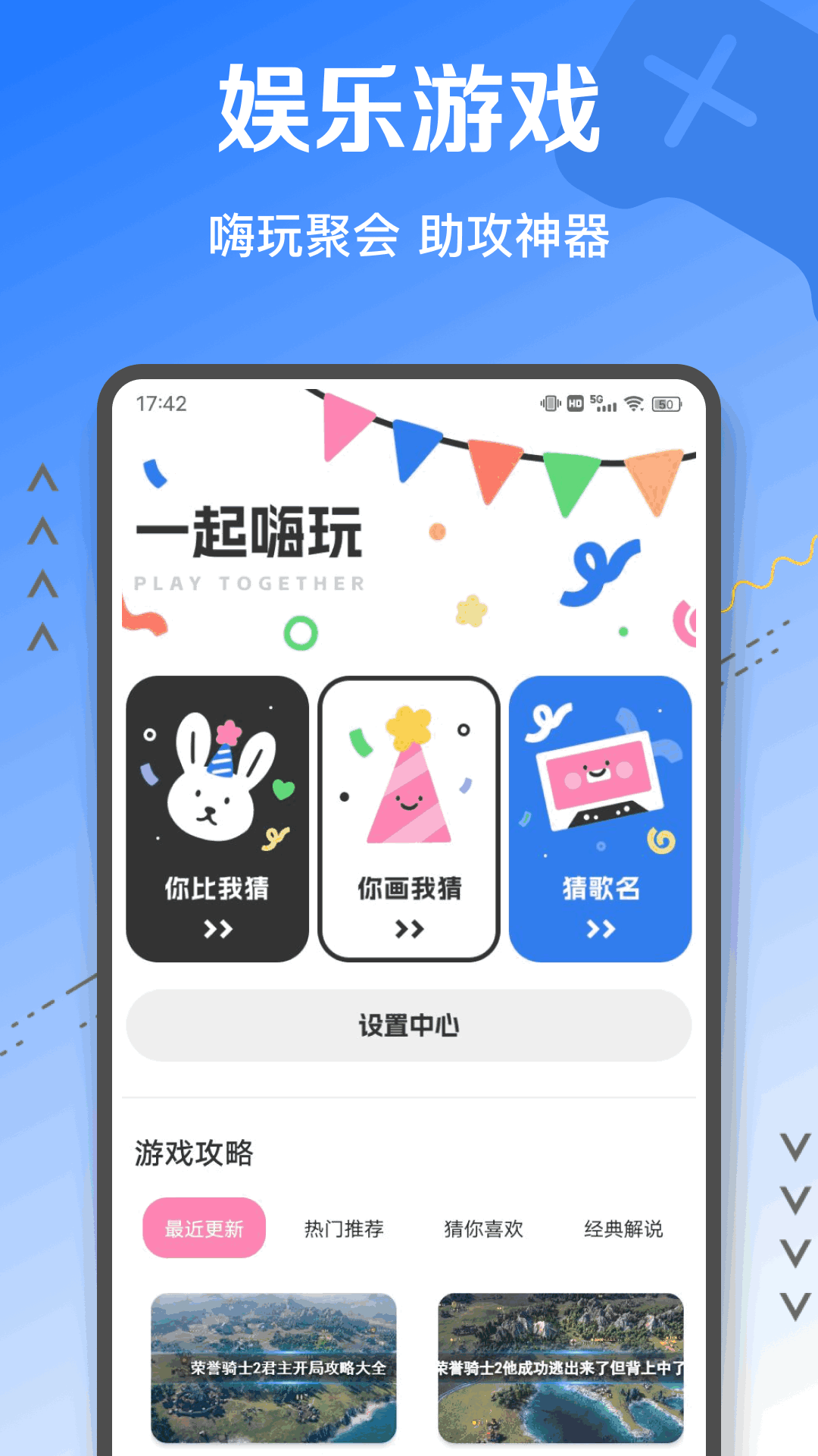 这是一款充满趣味、轻松解压的APP——我的休闲时光pro。它主要包含两大模块,一是休闲小游戏模块,其中有“你比我猜”“你画我猜”“猜歌名”等趣味游戏;二是游戏攻略模块。在当今这个生活节奏飞快、人们压力极大的时代,只需动动指尖,简单玩一玩这里的小游戏,或者查看游戏攻略,就能沉浸于它们所带来的快乐之中,从而有效解压,让你体验到与众不同的软件乐趣。