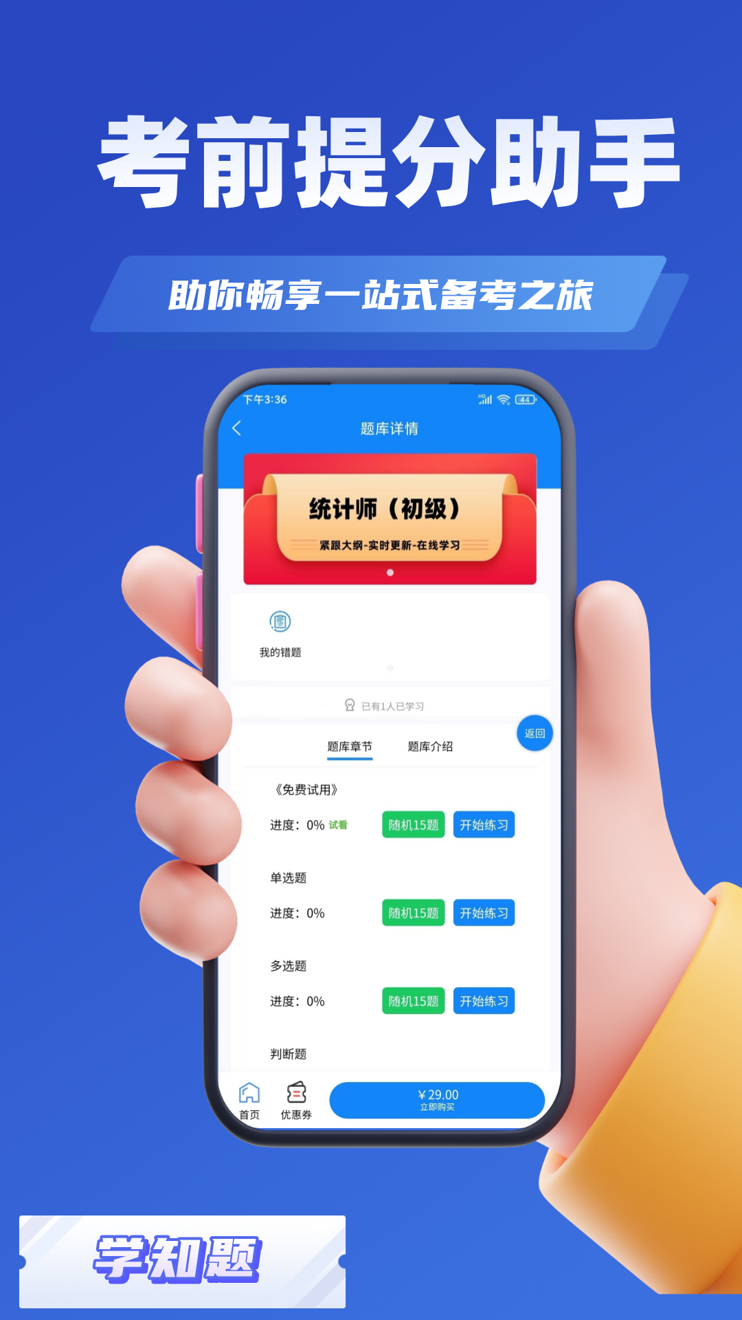 【统计师考试学知题】包含统计师考试的所有知识点,涵盖模拟考场、快速练习、考点练习、测试纪录、错题重做等功能模块,学员通过模拟练习来判断自己缺失的知识点和薄弱环节,通过错题重做功能,来补足学员短板,助力考试通关! 我们的题库包含了统计师考试的高质量试题(含历年真题),都可以在线做题、交卷、评分等,并支持章节练习,错题重做等特色功能。