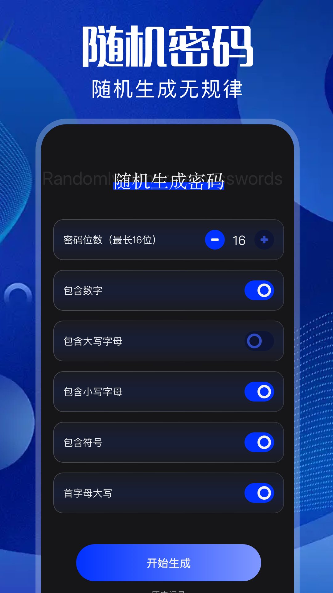 还有密码生成器功能,它能够依据用户的设定来生成密码。用户可以自行设置密码的长度以及复杂程度,例如通过设定小写字母、大写字母、数字、特殊字符等各类字符的数量,然后点击生成按钮,即可得到符合要求的密码。