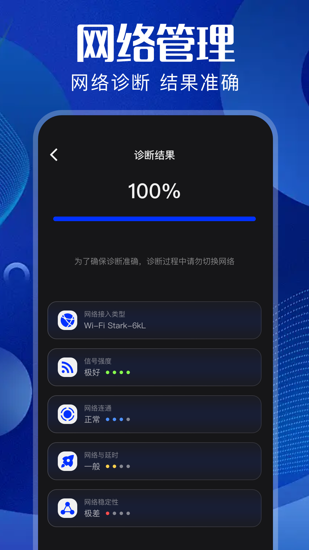 在网络测速方面,它能够迅速且精准地检测出当前设备所连接网络的速度。只需轻松点击“一键测速”按钮,就能马上得到实时的网速数据。