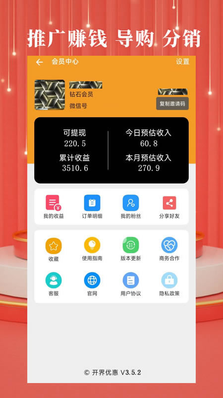 邀请好友免费注册会员,当好友享受优惠省钱的时候,您就能赚取佣金,而且无需在朋友圈进行骚扰式推广。
