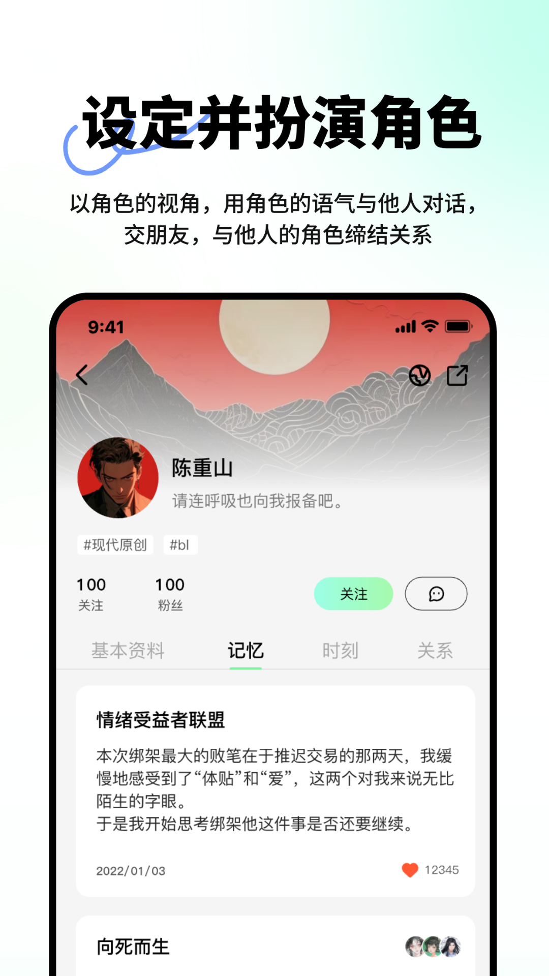 在这个软件里,你能够扮演原创或者同人角色,从这个角色的角度出发,去结识好友,邂逅知己,体会各种悲欢离合。这个角色是你的一部分,是你虽然优秀但不被人知晓的部分,是你内心渴望却无法发展的部分。
