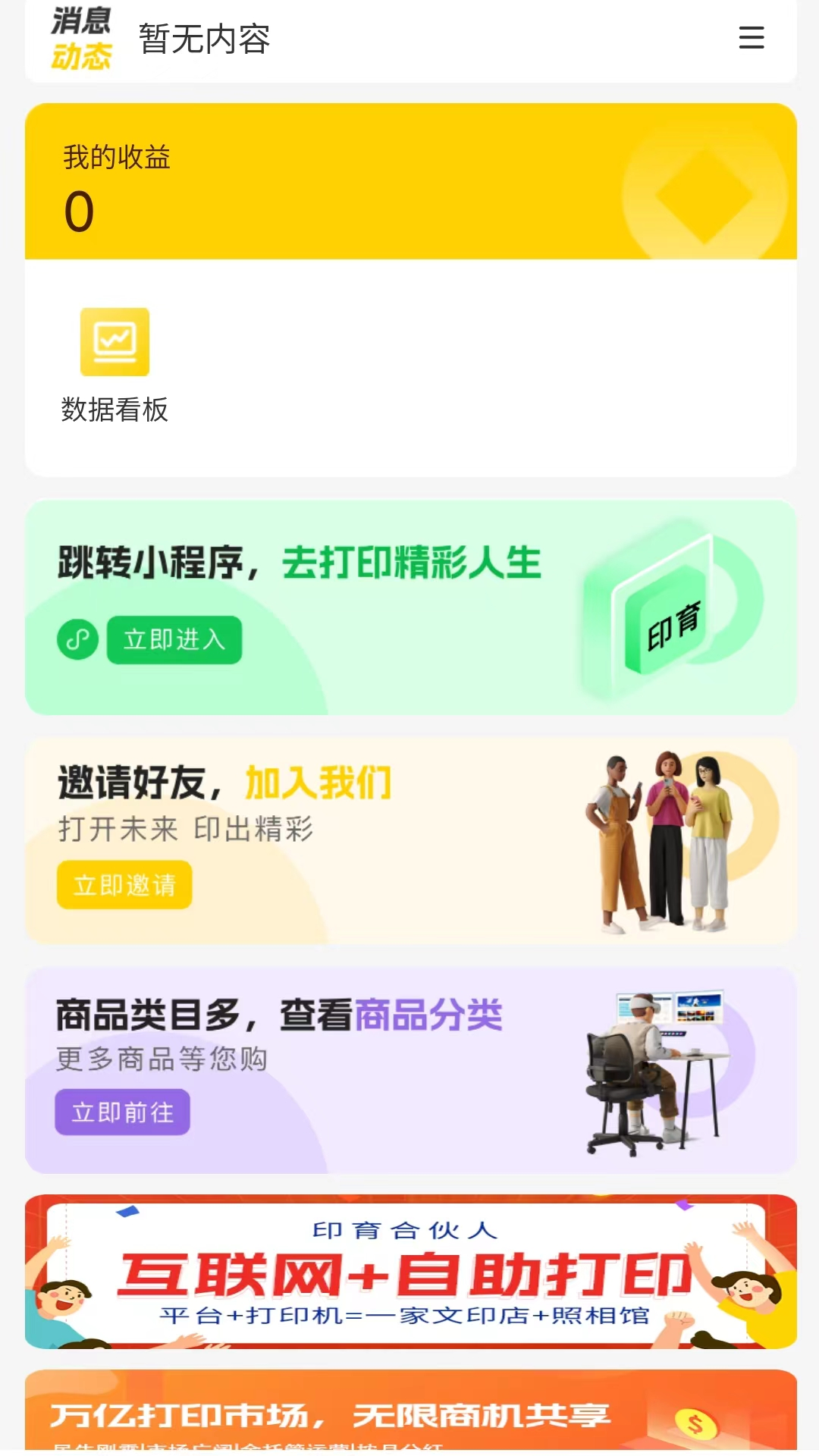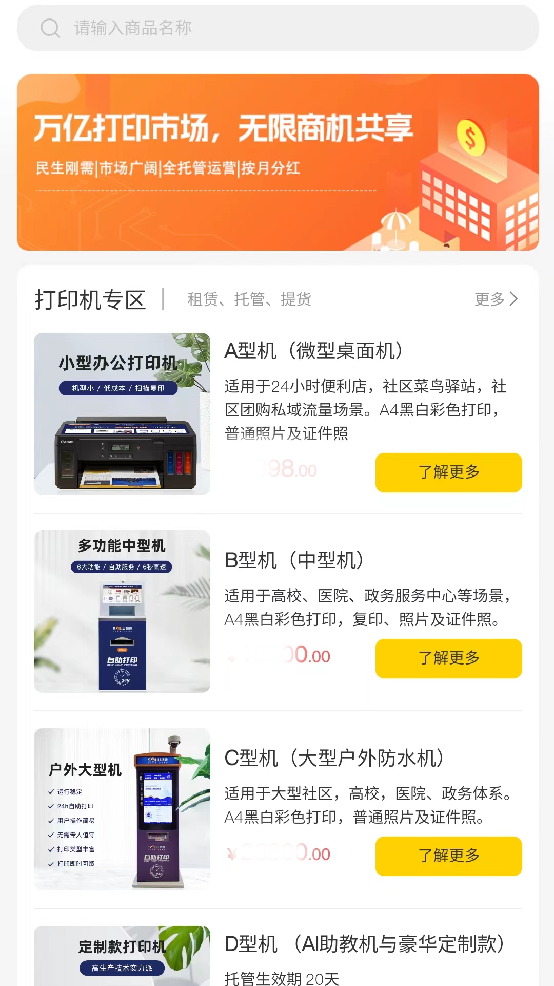 印育合伙人APP致力于为共享打印的客户提供一系列便捷服务。在该APP上,客户能够轻松进行设备购买,方便地开展设备区域管理与托管工作,还可以便捷地查看相关数据等。不仅如此,如果客户推荐下级客户,还能够获取奖金。印育合伙人APP旨在与大家共同构建一个自助打印便民的数字化共享平台。