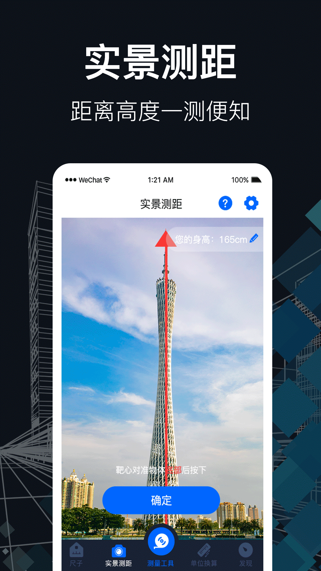 测距软件是您随身的测量助手,仿佛将各种测量工具装进了口袋。您可以随时随地用手机测量长度、距离、高度、角度、方位、噪音分贝,进行挂画校准,还能把手机当作尺子使用,既方便又简单。