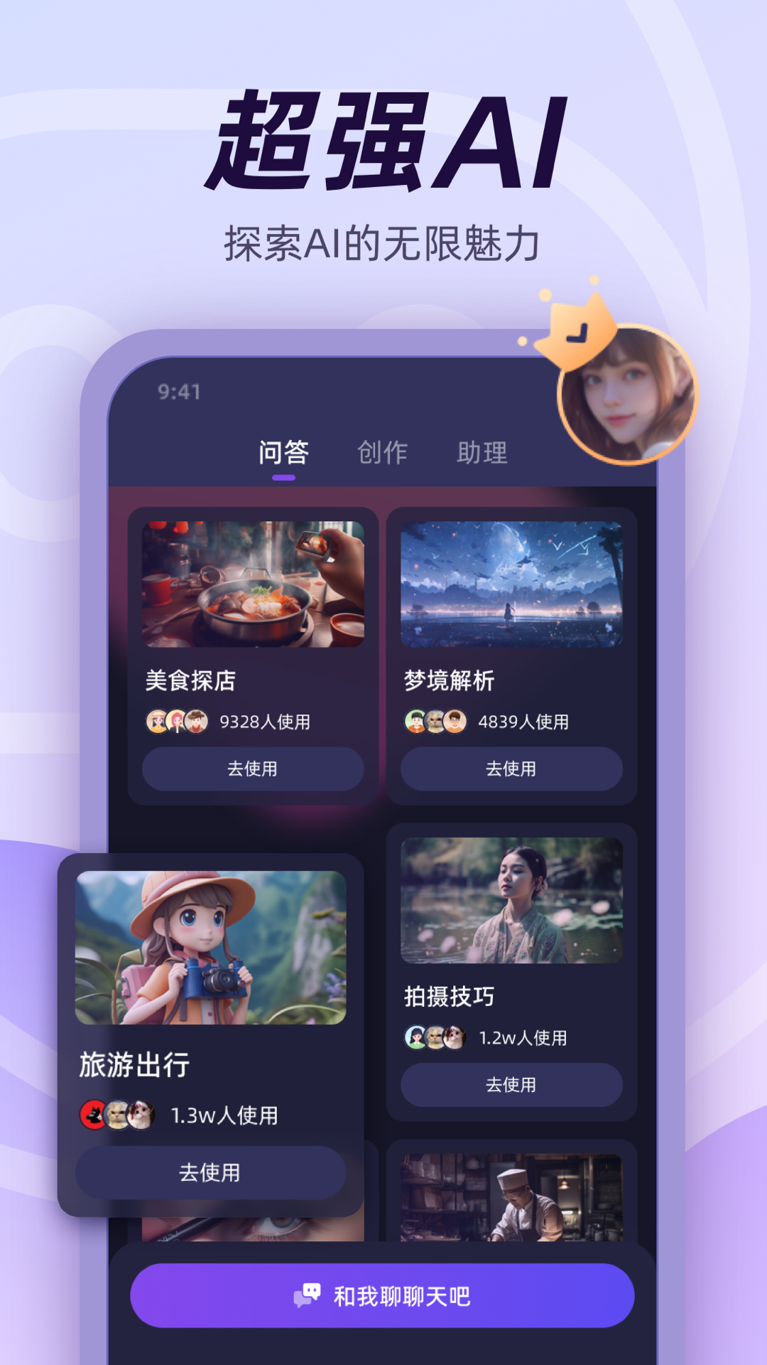 其四,多场景应用。这款应用能够提供多种服务,像是语言翻译、方案策划、文章创作、旅游攻略等,可满足不同的需求。