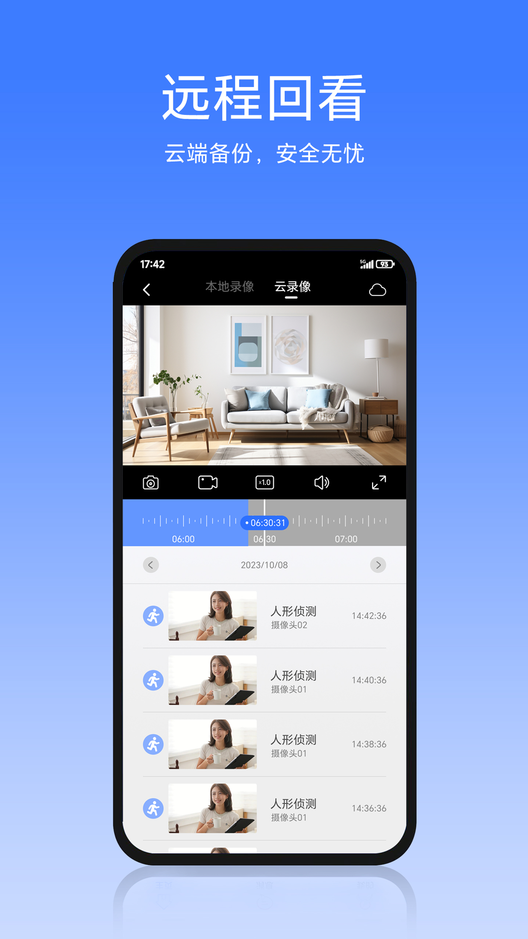 其三,支持查看存储卡、云存储中的录像以进行回看操作。