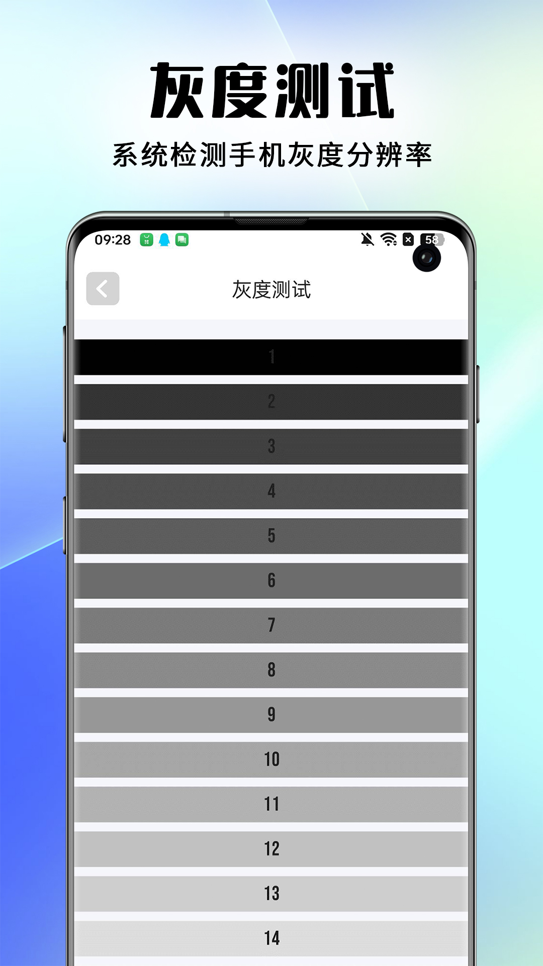 【屏幕显示测试】对屏幕的分辨率、色彩的精准度、亮度以及对比度等进行检测。