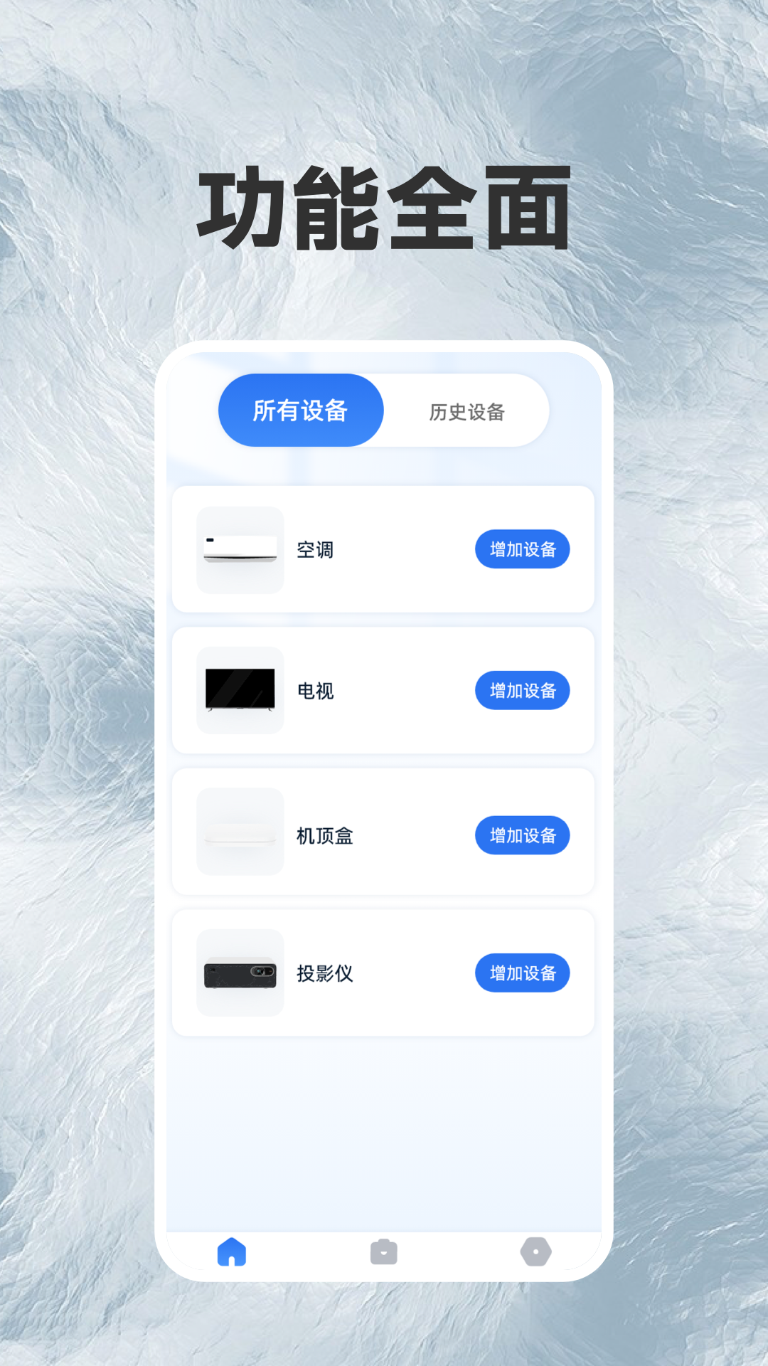 万能遥控器ym是一款真正的手机遥控器,它能够支持多种电器,像空调、电视、机顶盒、网络盒子、DVD、投影仪等等。