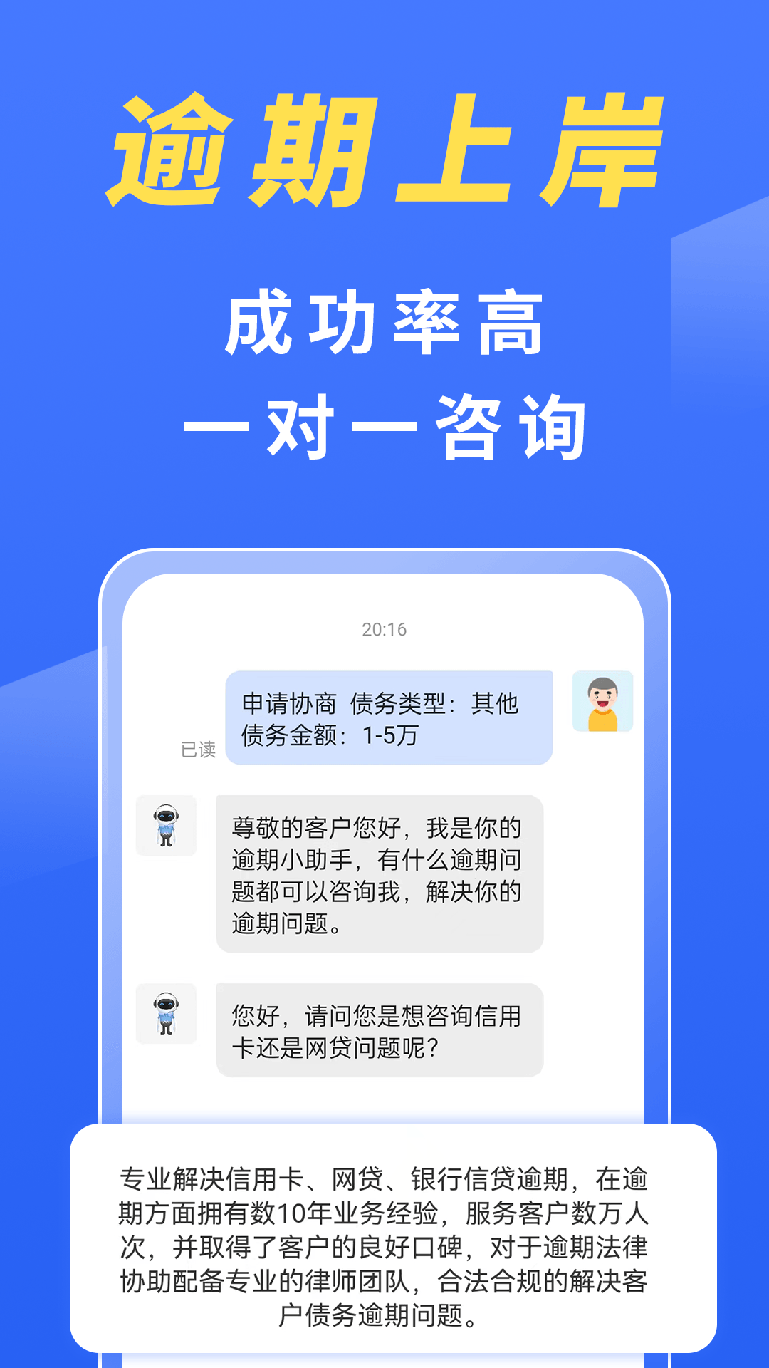 处理全国信用卡逾期、网贷逾期问题。专业债务律师一对一免费咨询,全程协助直至结清。
