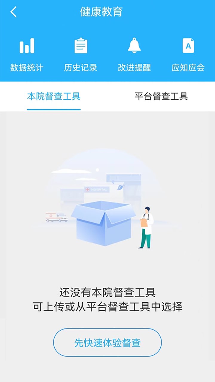 护理质控间旨在构建医疗机构院科两级的质量管理平台,以此开展护理质量控制工作。通过该平台,促使护士的护理行为达到护理工作以及对患者有益的质量标准要求,从而阻断、消除并减少不良护理行为和质控问题,防范护理缺陷及隐患的出现,确保护理安全。