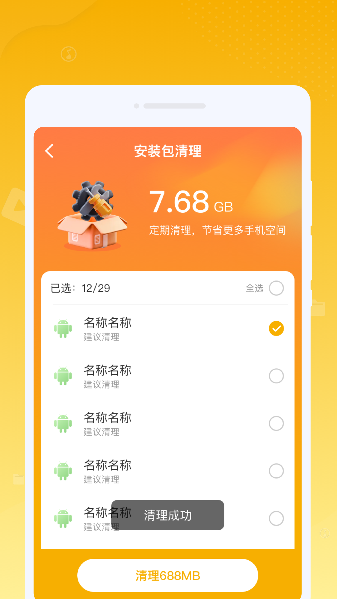 一款非常好用的手机垃圾清理软件,轻松文件清理、缓存清理、残留文件清理、冗余软件清理、广告清理、重复图片清理、明星桌面清理等,加快手机的运行速度。所有的功能都是免费使用,感兴趣的用户欢迎前来下载吧!