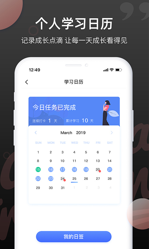 生成专属个人的学习日历,使成长进程每日清晰可见。