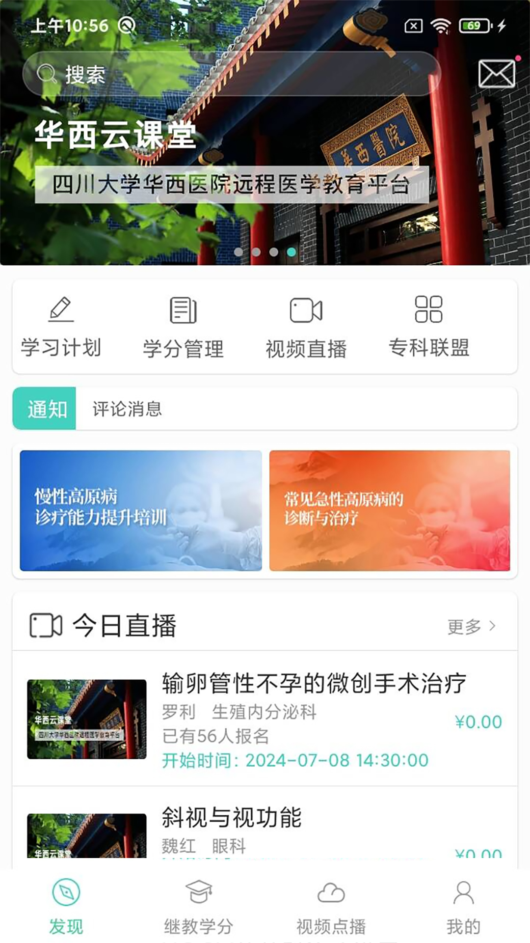华西云课堂APP是四川大学华西医院打造的远程移动医疗教育平台。该平台系统汇集了华西医院众多专家教授的海量权威教学视频,其教学资源全面覆盖行政、临床的各个岗位。对于学员而言,平台提供了在线直播、视频点播、课件分享、课程讨论等多种学习方式。系统能够依据学员的需求,有针对性地推荐课程内容,学员可在线完成继续教育学习,在通过考试测评之后获取继教学分。华西云课堂APP以其灵活多样的学习方式,将影响力辐射到更广泛的医务人群,从而实现全面提升医务人员业务水平的目标。