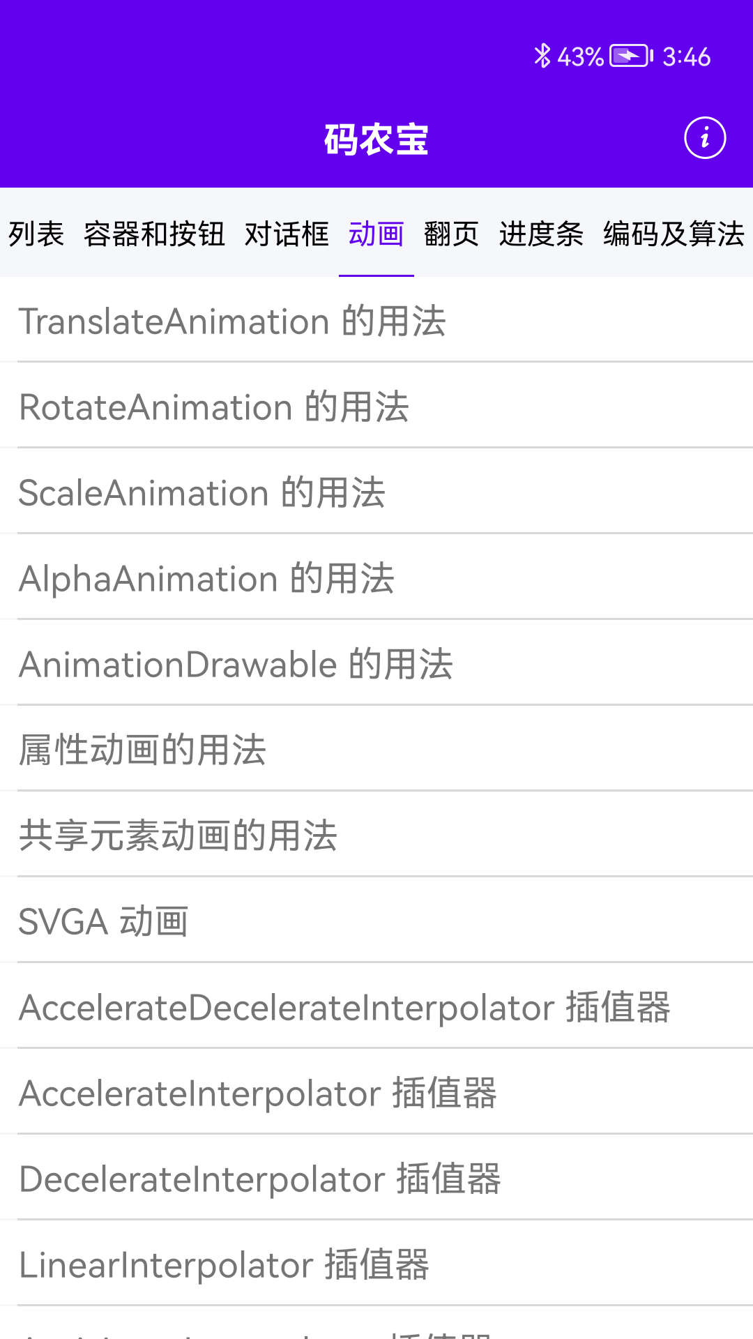 - 动画相关的代码和效果Demo。