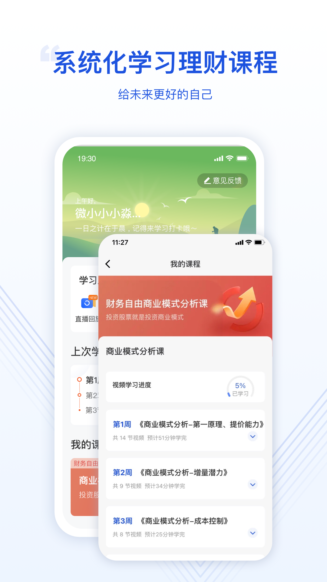 在课程内容方面,包含财务思维、投资分析、金融工具、操作实践这四大模块的理论知识学习,为用户提供金融知识普及、财商思维培养以及企业运营管理等多方面的学习内容。