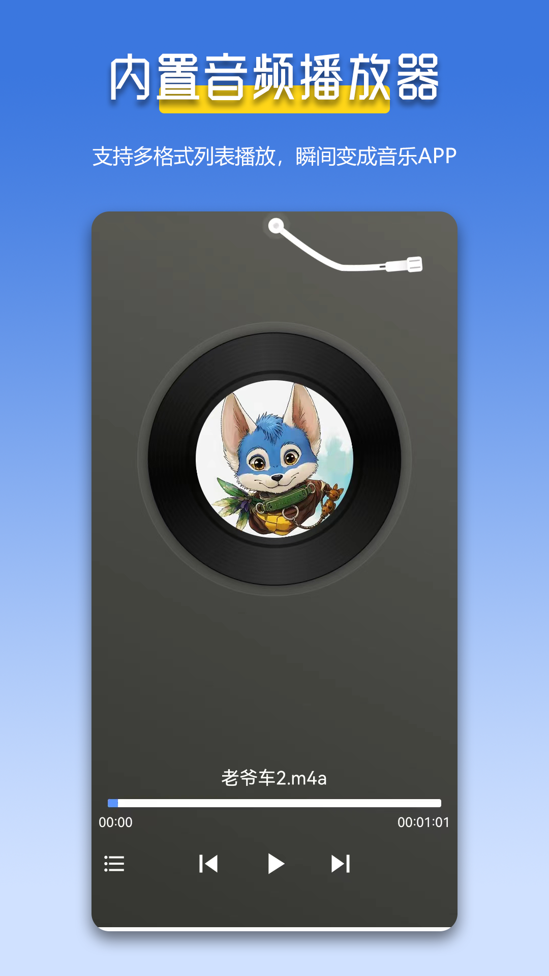 9. 对于音频文件,能够自动扫描加载所有音频列表,瞬间化身音乐播放器,满足用户的音频播放需求。