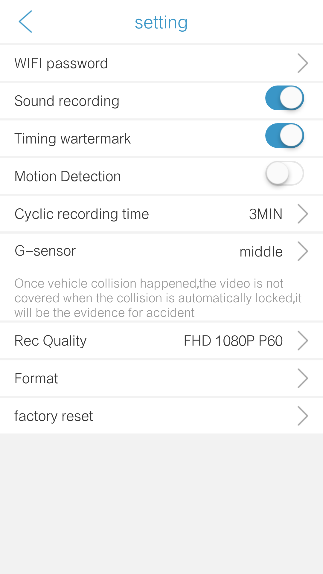 RICAM能够直接通过APP与行车记录仪设备相连接,从而对记录仪进行管理与设置。此软件具备如下功能: