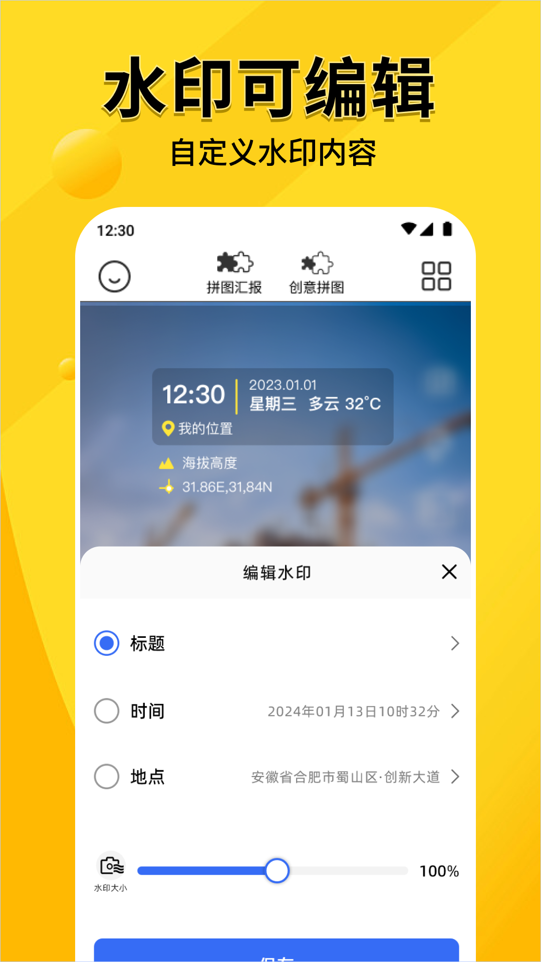水印上内容选项自由开关,自由添加水印内容行数、修改颜色、添加图片logo等
