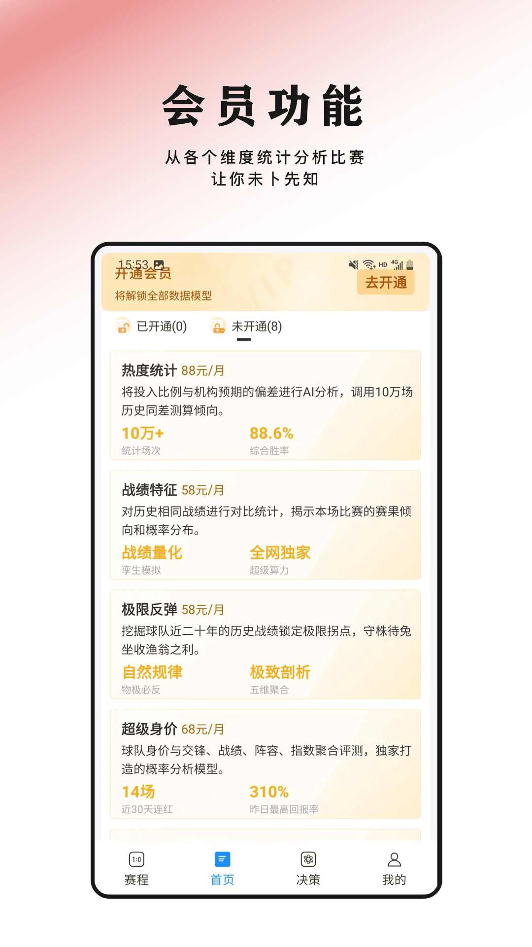 【AI决策】领取超级VIP特权即可一键解锁AI决策模型,冷门预警、聚合预测、球员身价、多维大数据模型助力决策马到功成。